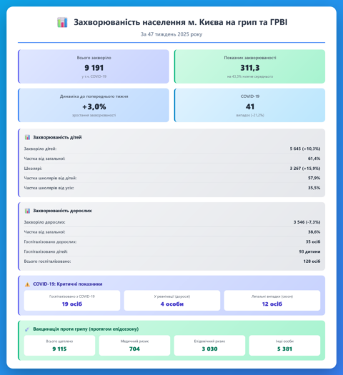 📊 Захворюваність на грип та ГРВІ у Києві за 47-й тиждень 2025 року.