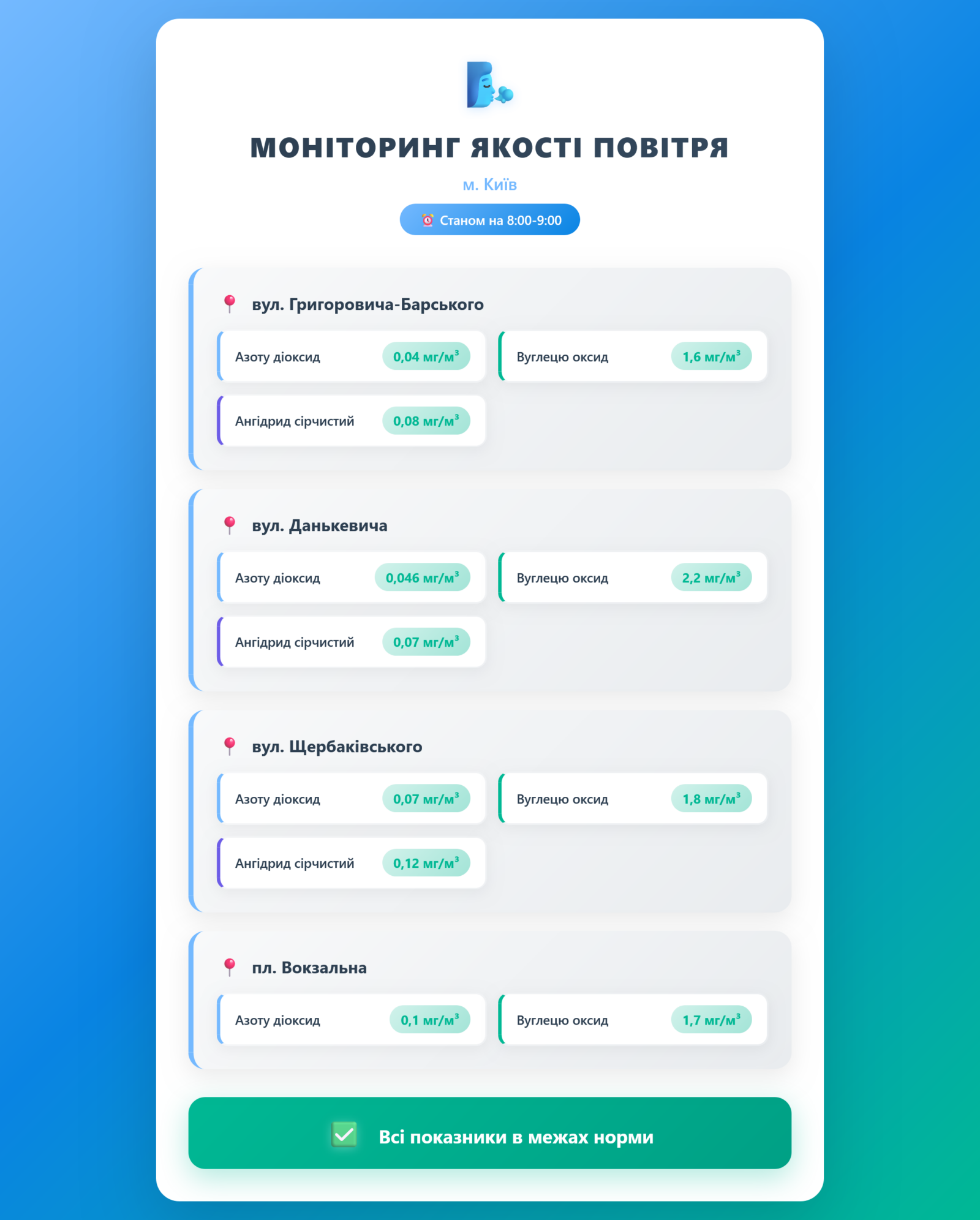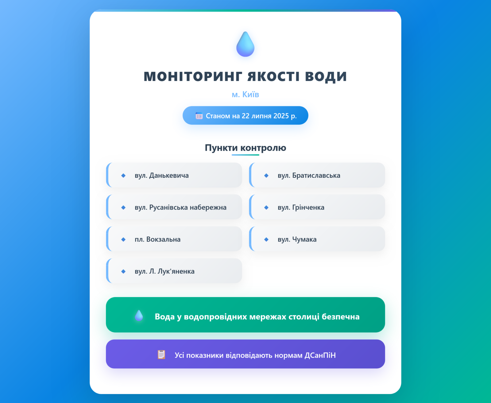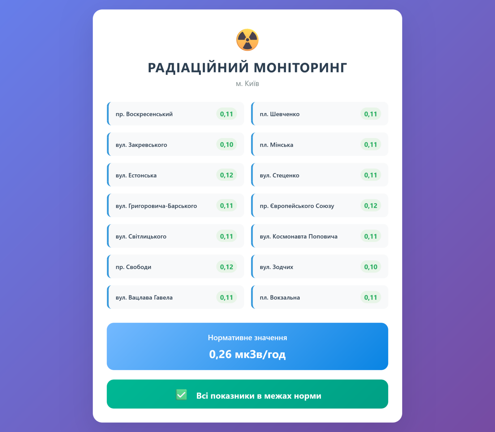 Радіаційний гамма фон, дані по атмосферному повітрю, відібрані проби питної води
