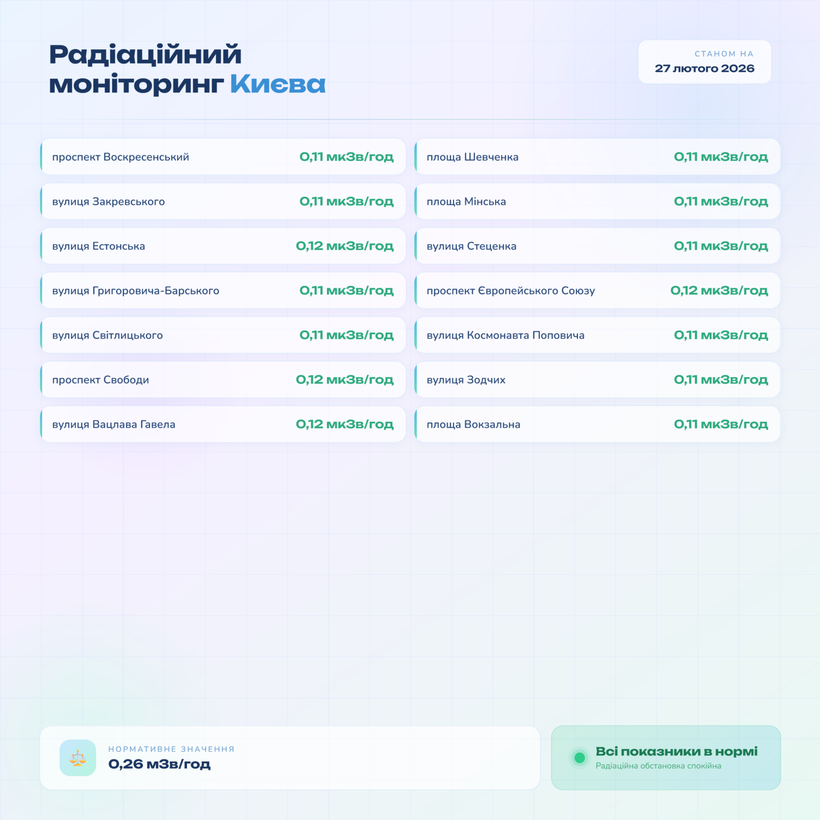 Радіаційний гамма фон, дані по атмосферному повітрю.