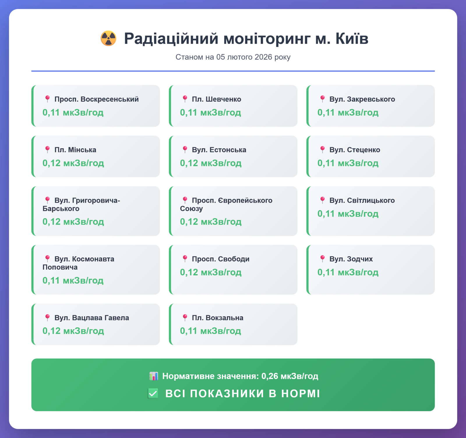 Радіаційний гамма фон, дані по атмосферному повітрю.