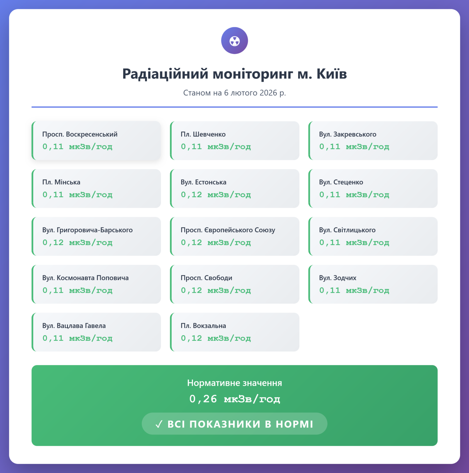 Радіаційний гамма фон, дані по атмосферному повітрю.