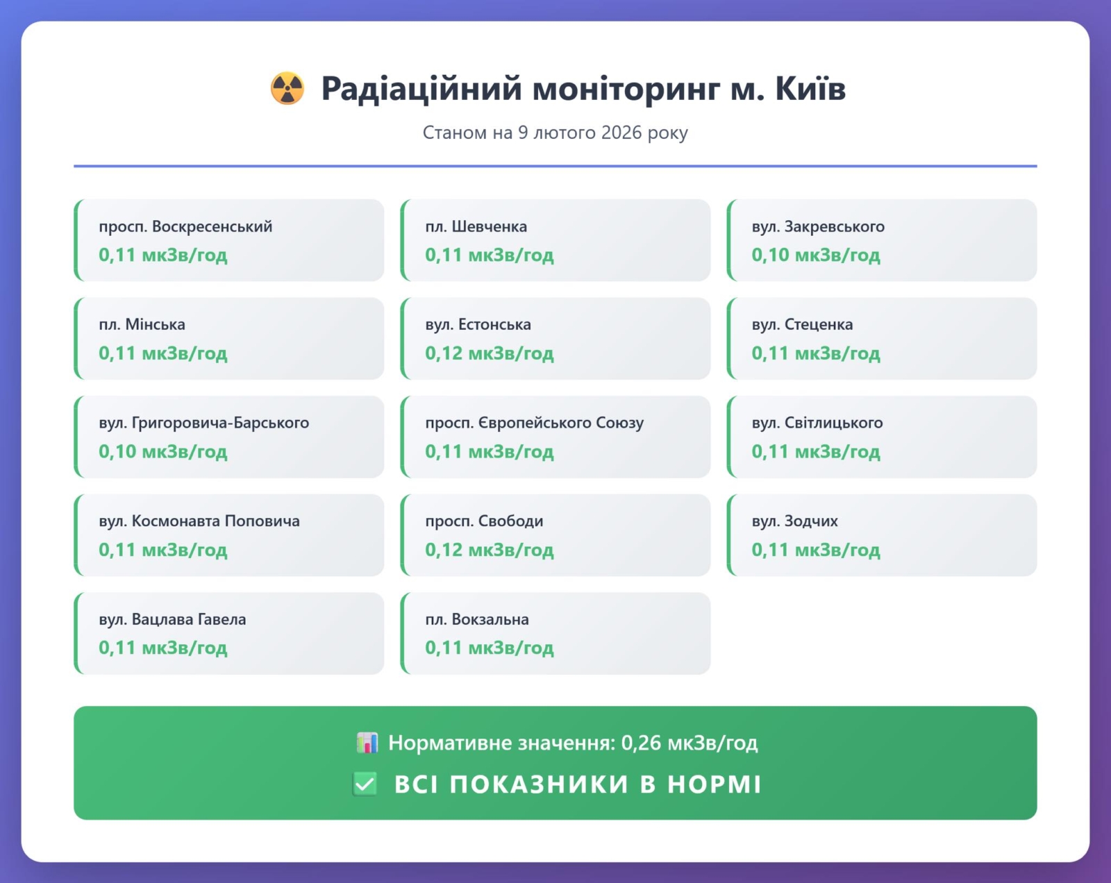 Радіаційний гамма фон, дані по атмосферному повітрю.