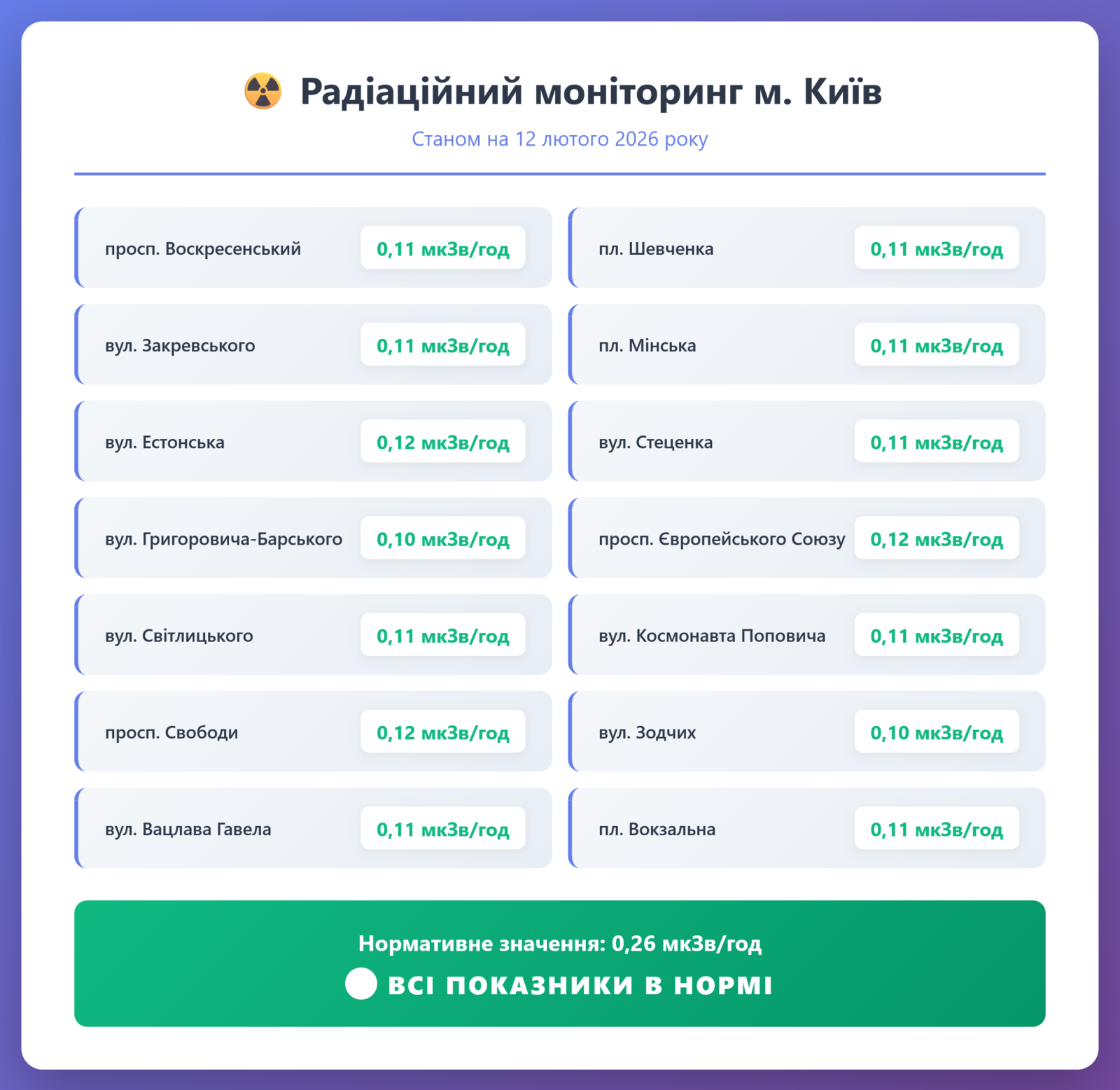 Радіаційний гамма фон, дані по атмосферному повітрю.