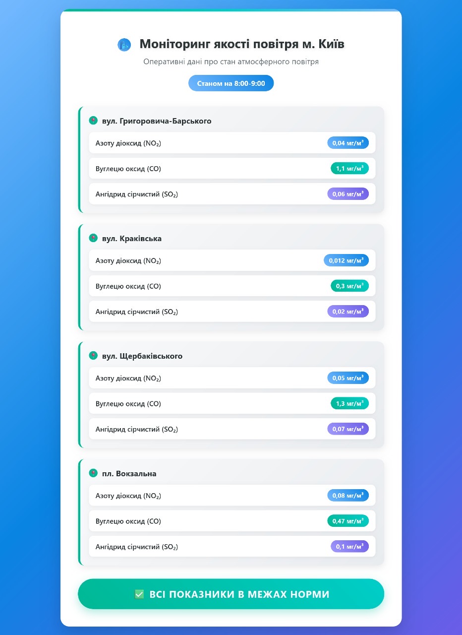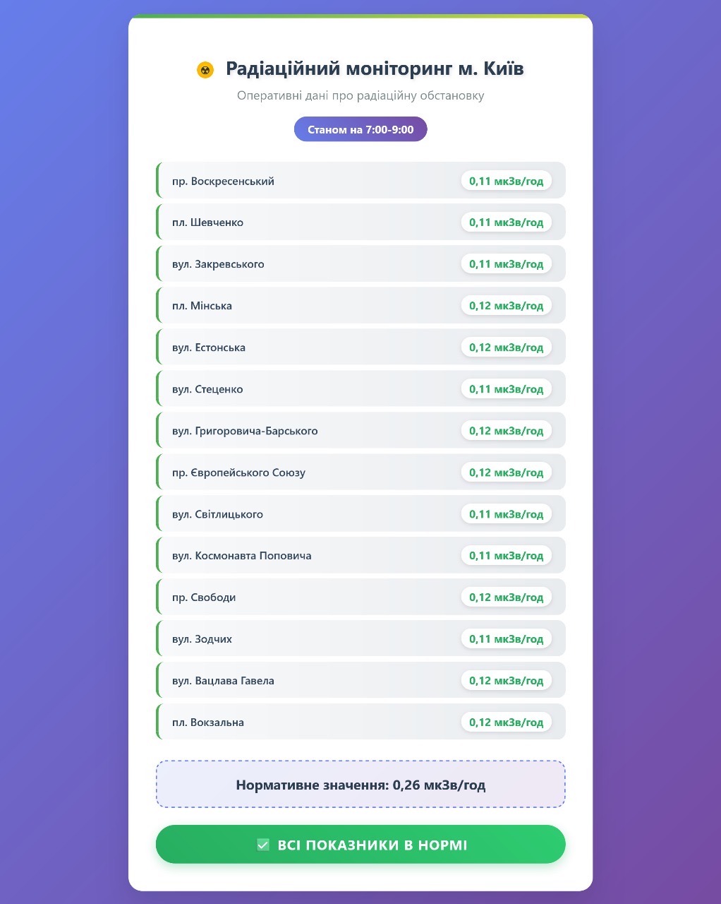 Радіаційний гамма фон, дані по атмосферному повітрю, відібрані проби питної води
