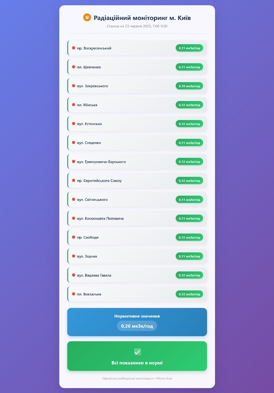 Радіаційний гамма фон, дані по атмосферному повітрю, відібрані проби питної води