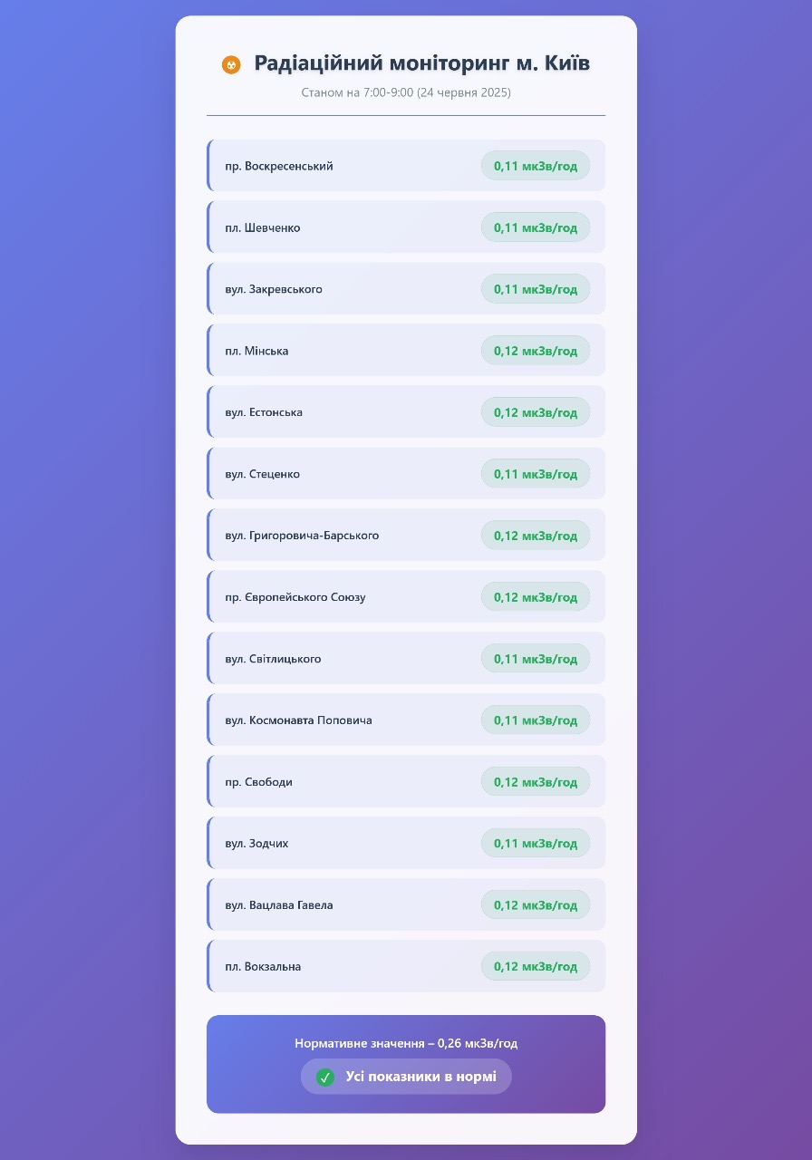 Радіаційний гамма фон, дані по атмосферному повітрю, відібрані проби питної води