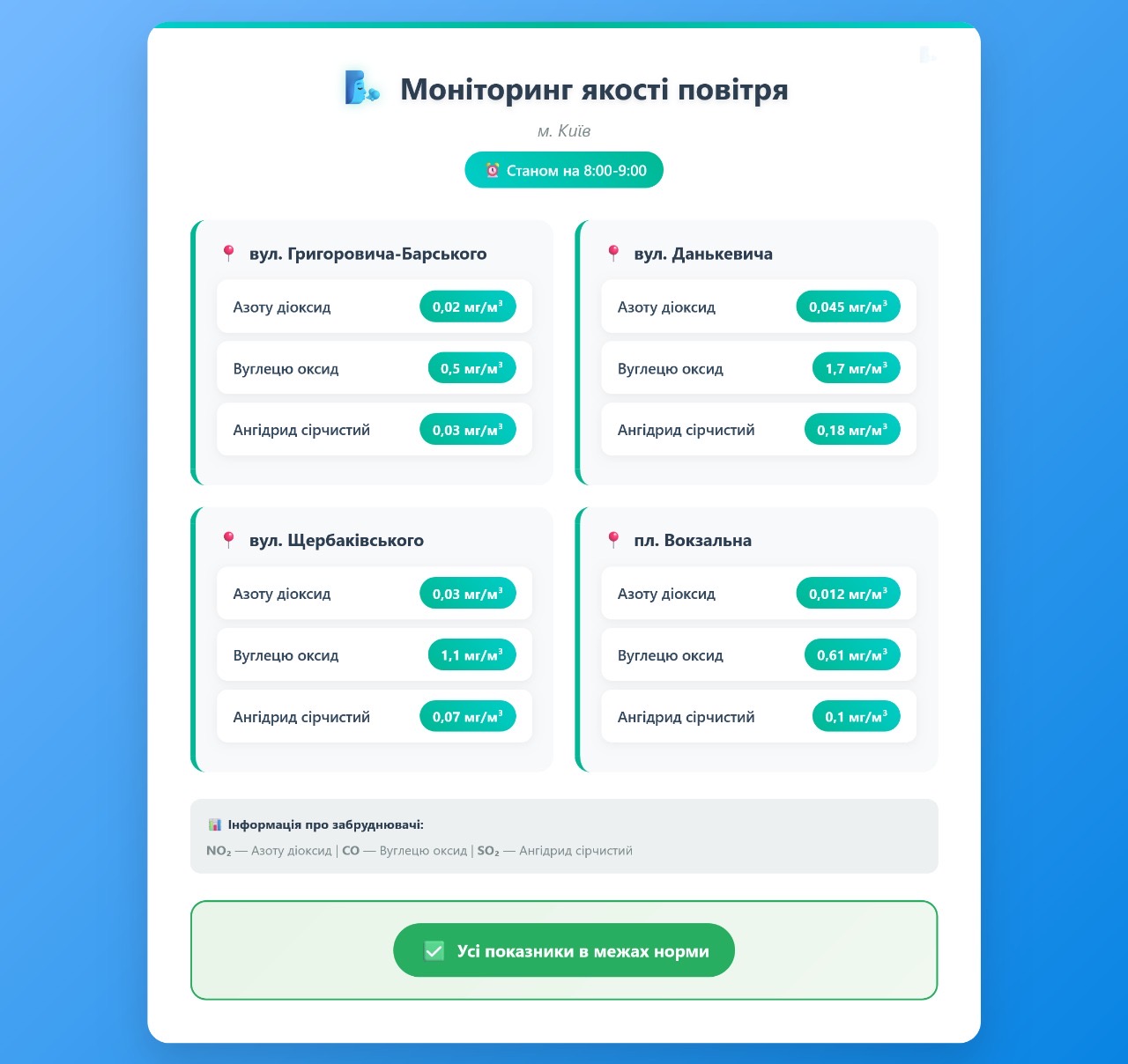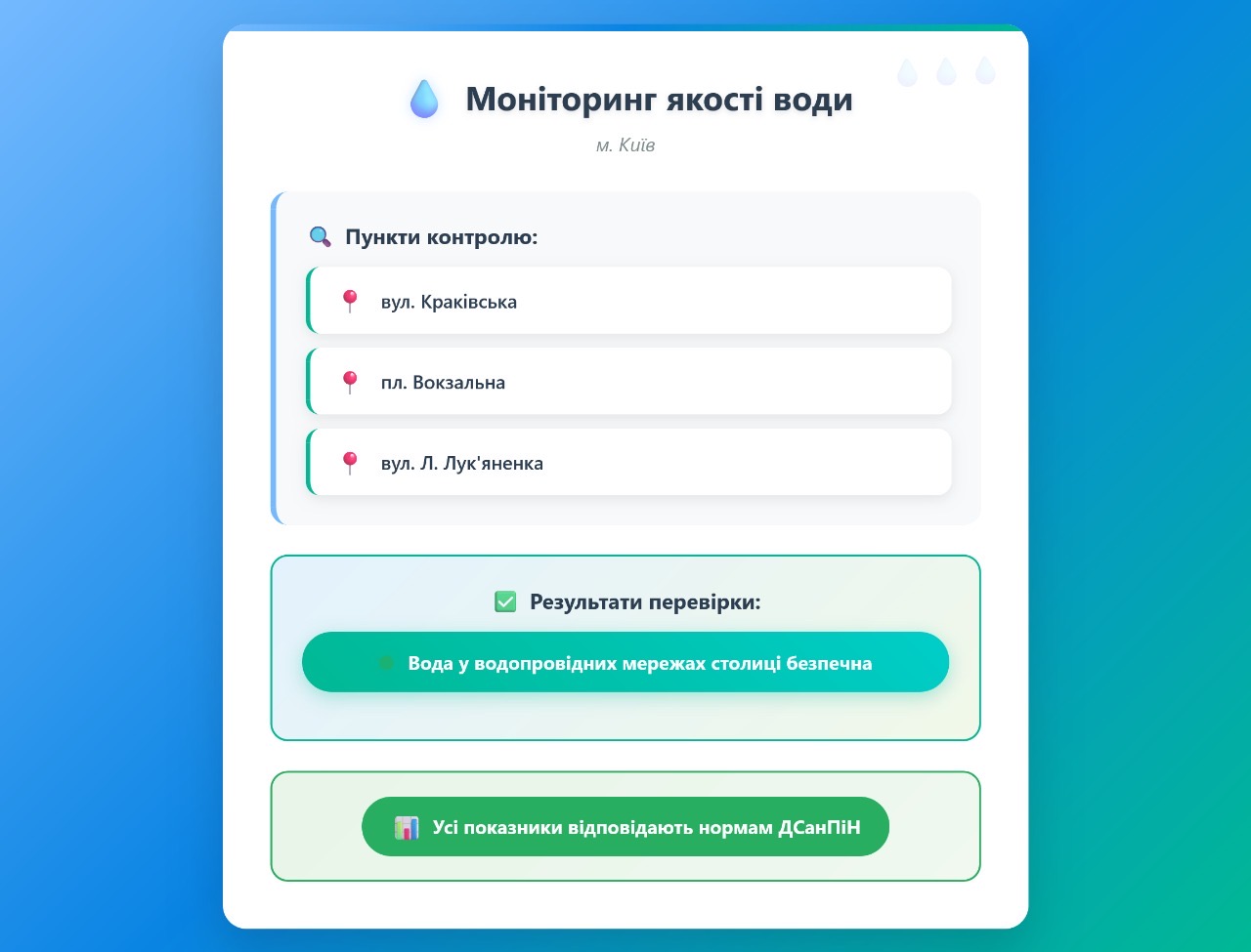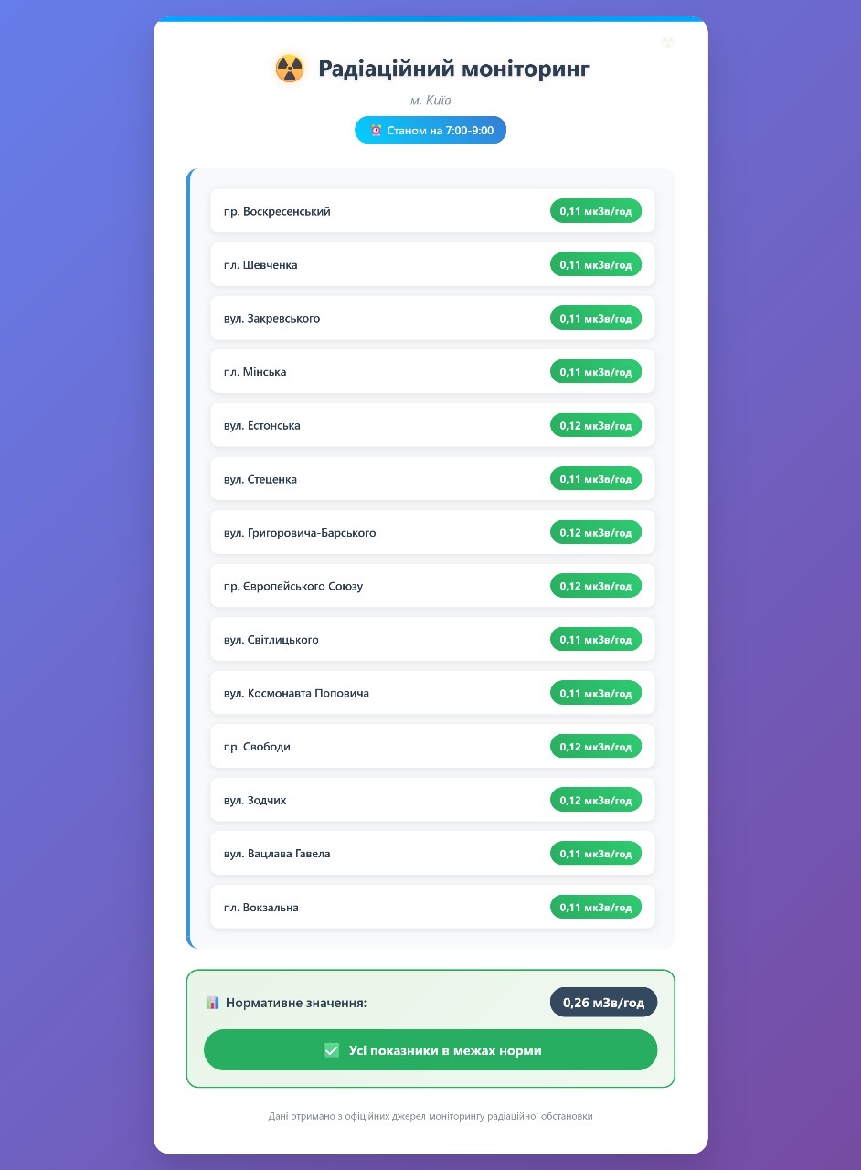 Радіаційний гамма фон, дані по атмосферному повітрю, відібрані проби питної води