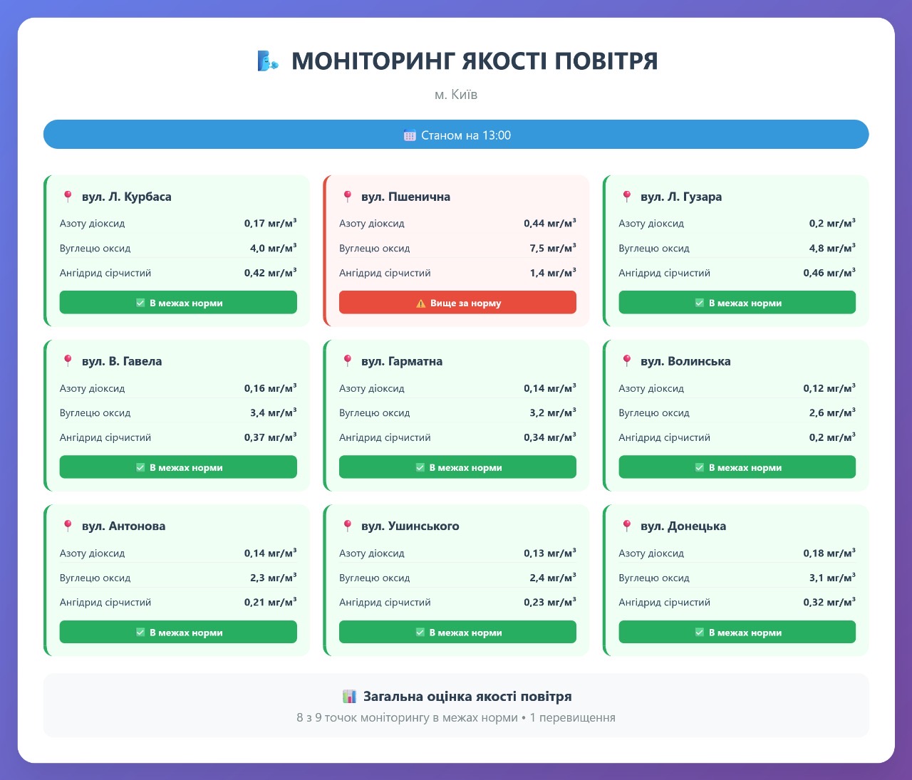 Радіаційний гамма фон, дані по атмосферному повітрю, відібрані проби питної води