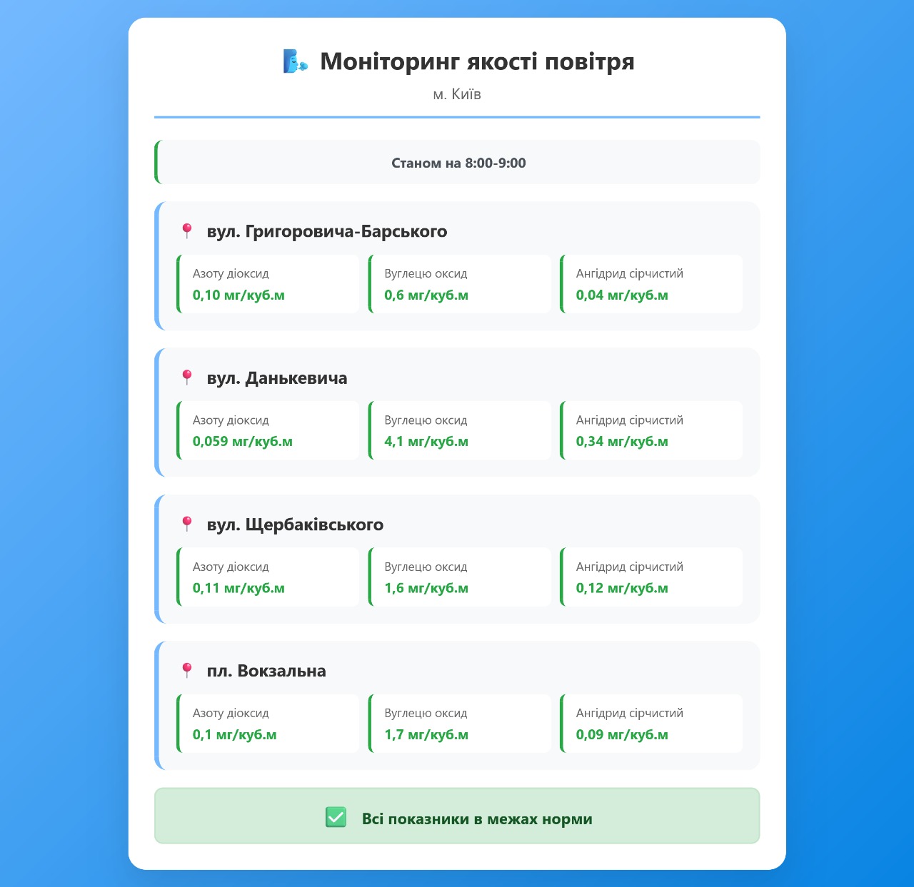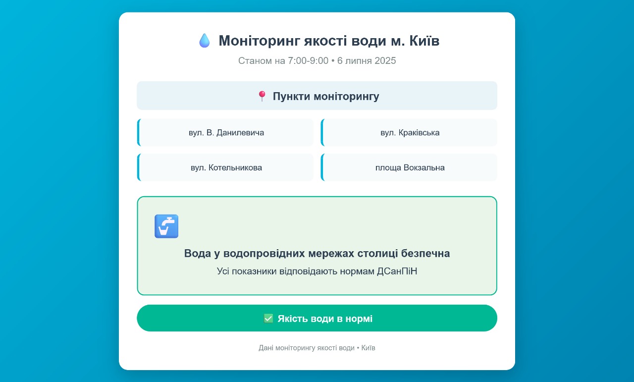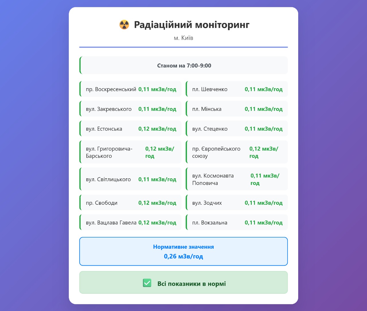 Радіаційний гамма фон, дані по атмосферному повітрю, відібрані проби питної води