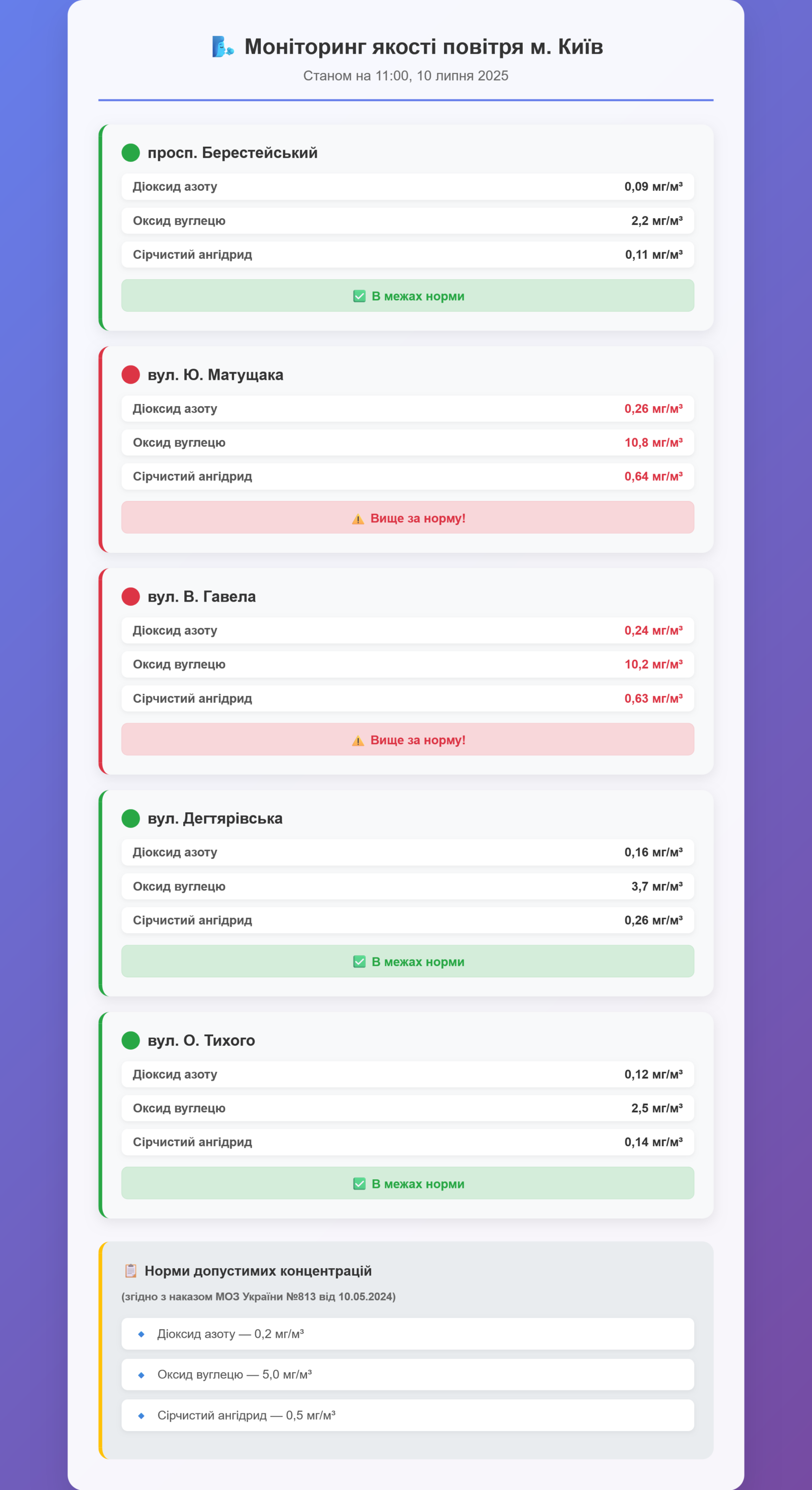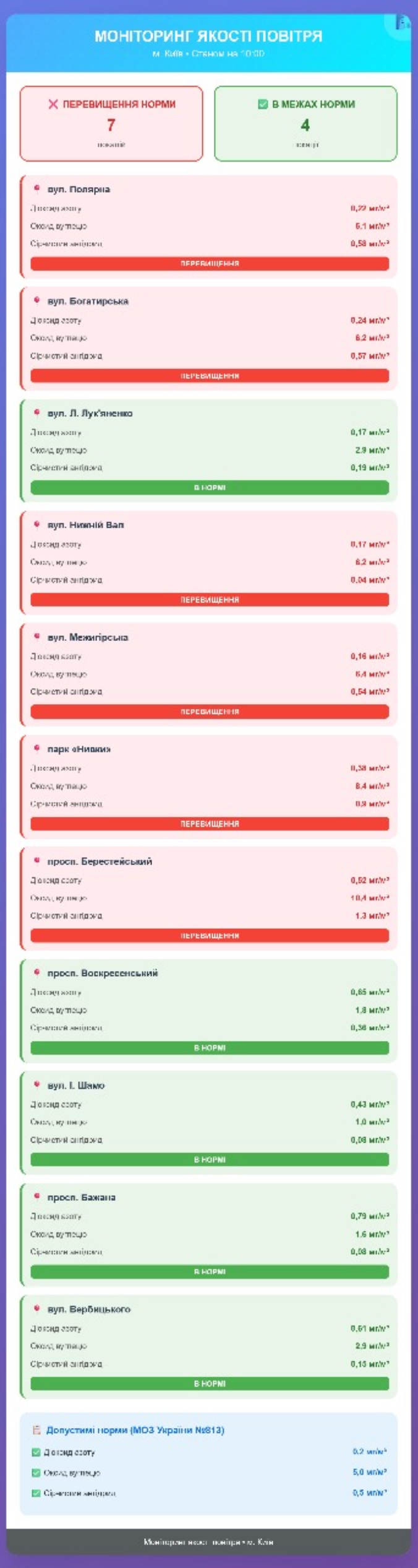 Радіаційний гамма фон, дані по атмосферному повітрю, відібрані проби питної води