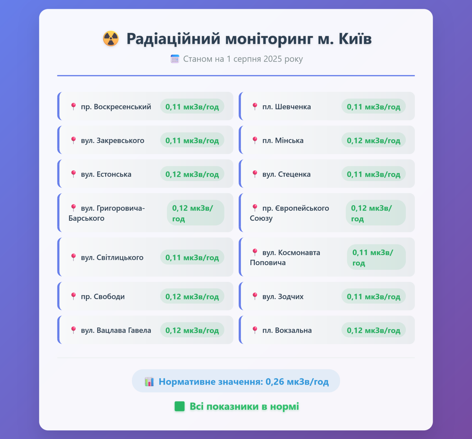 Радіаційний гамма фон, дані по атмосферному повітрю, відібрані проби питної води