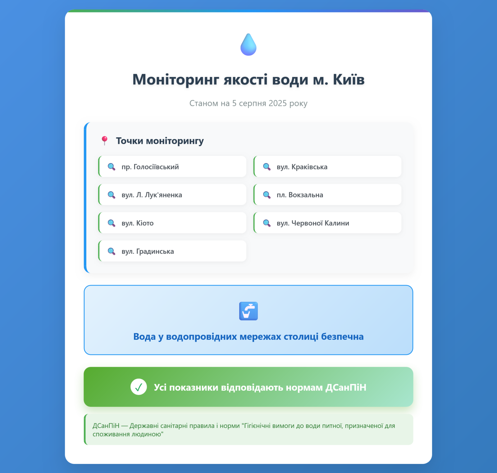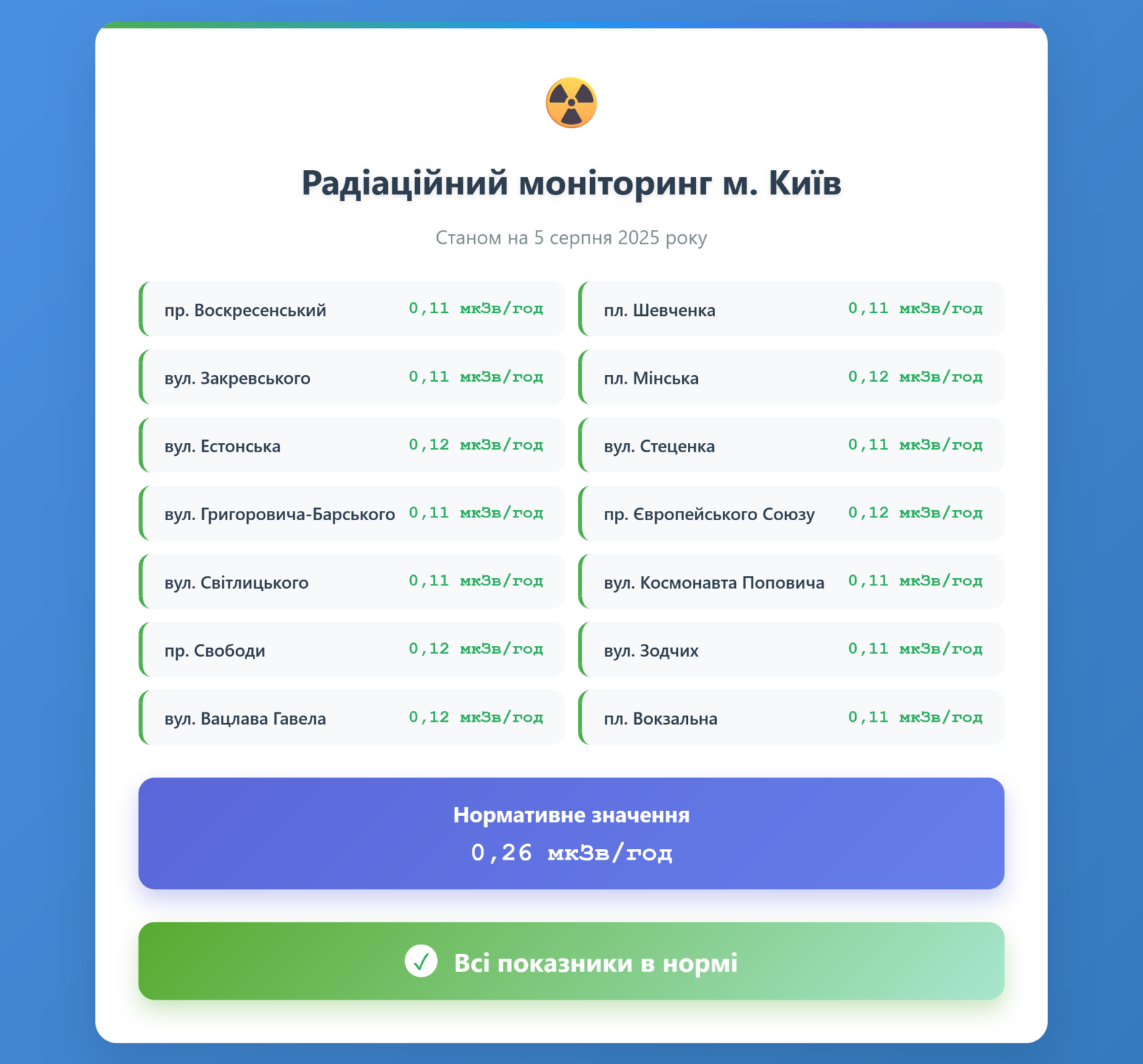Радіаційний гамма фон, дані по атмосферному повітрю, відібрані проби питної води