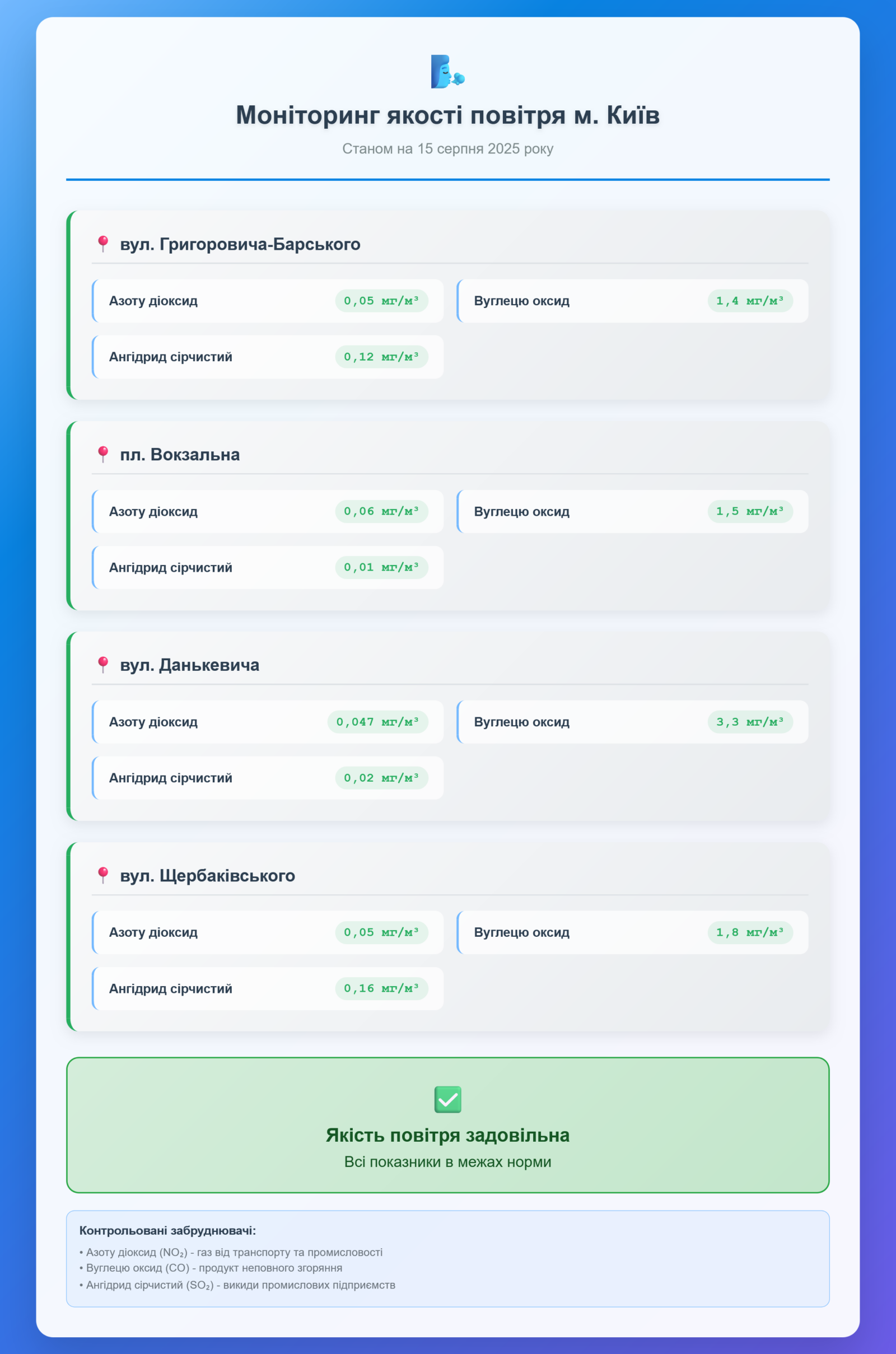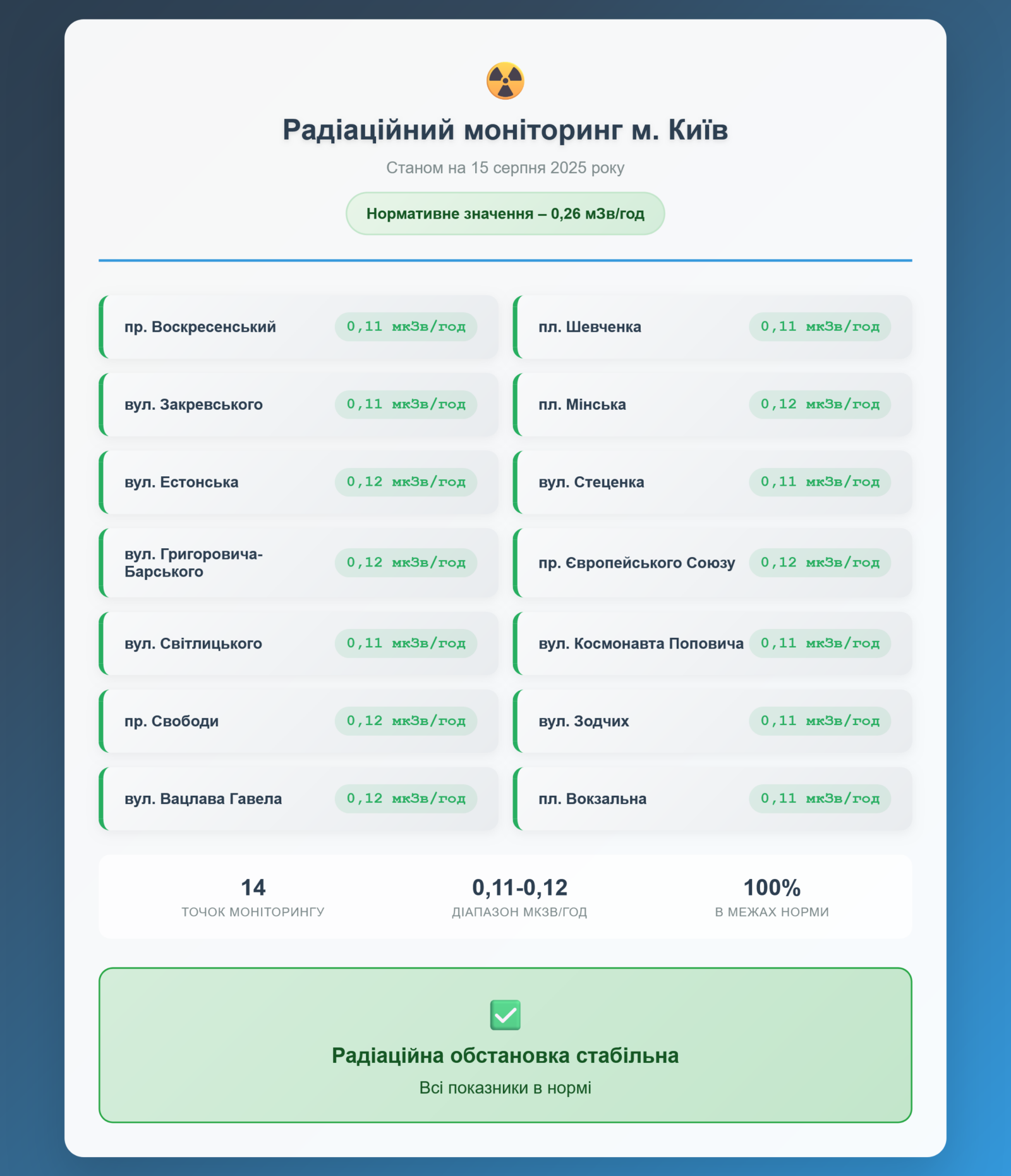 Радіаційний гамма фон, дані по атмосферному повітрю, відібрані проби питної води.