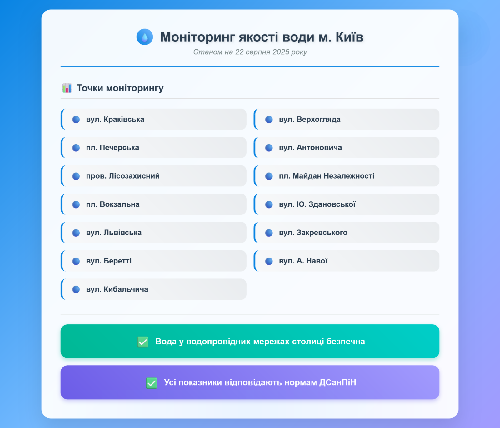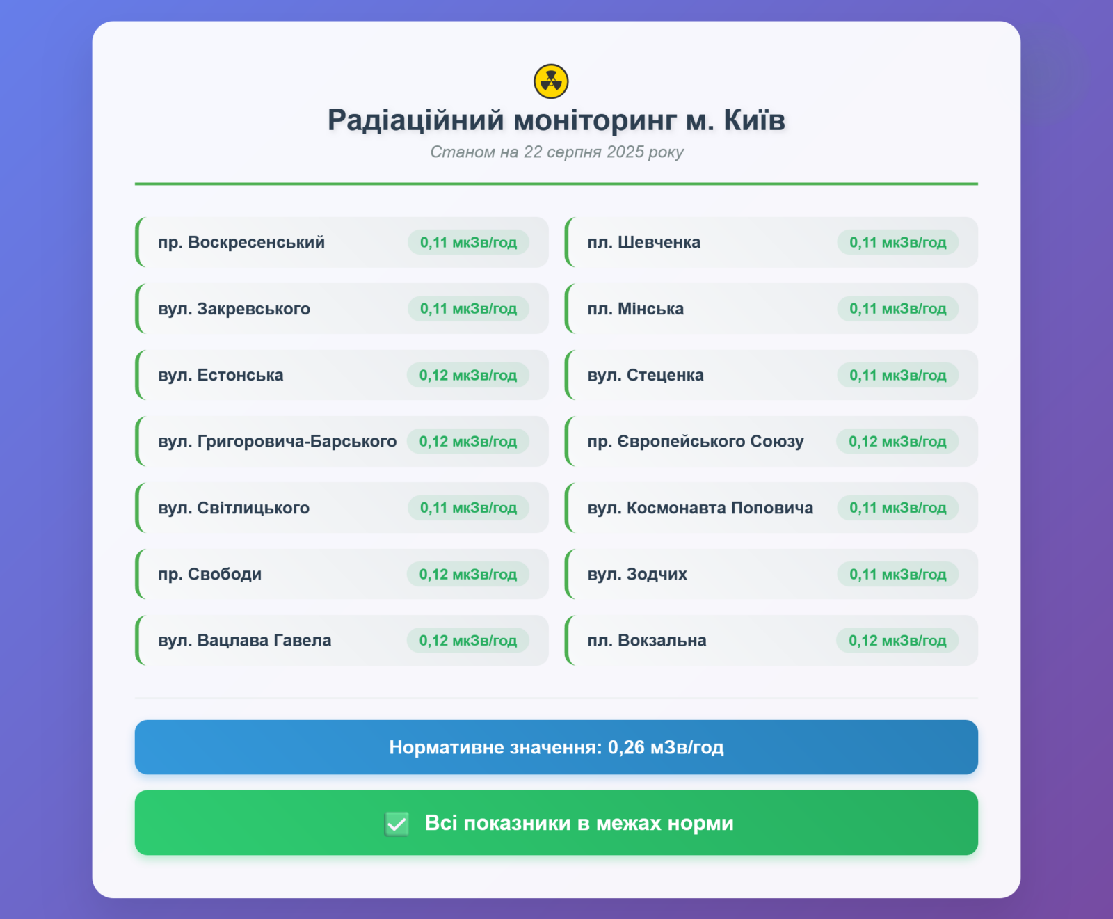 Радіаційний гамма фон, дані по атмосферному повітрю, відібрані проби питної води.