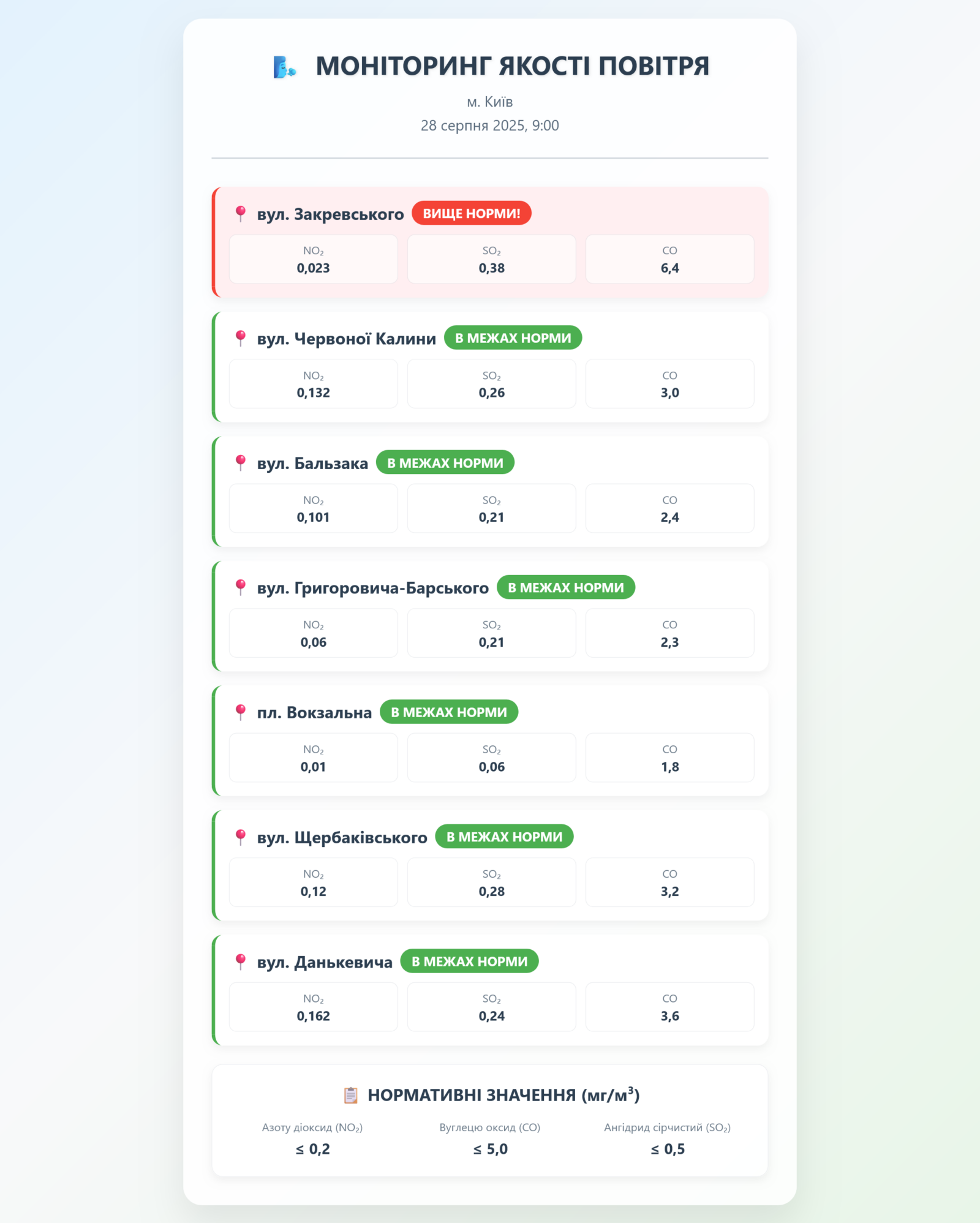 Радіаційний гамма фон, дані по атмосферному повітрю, відібрані проби питної води.