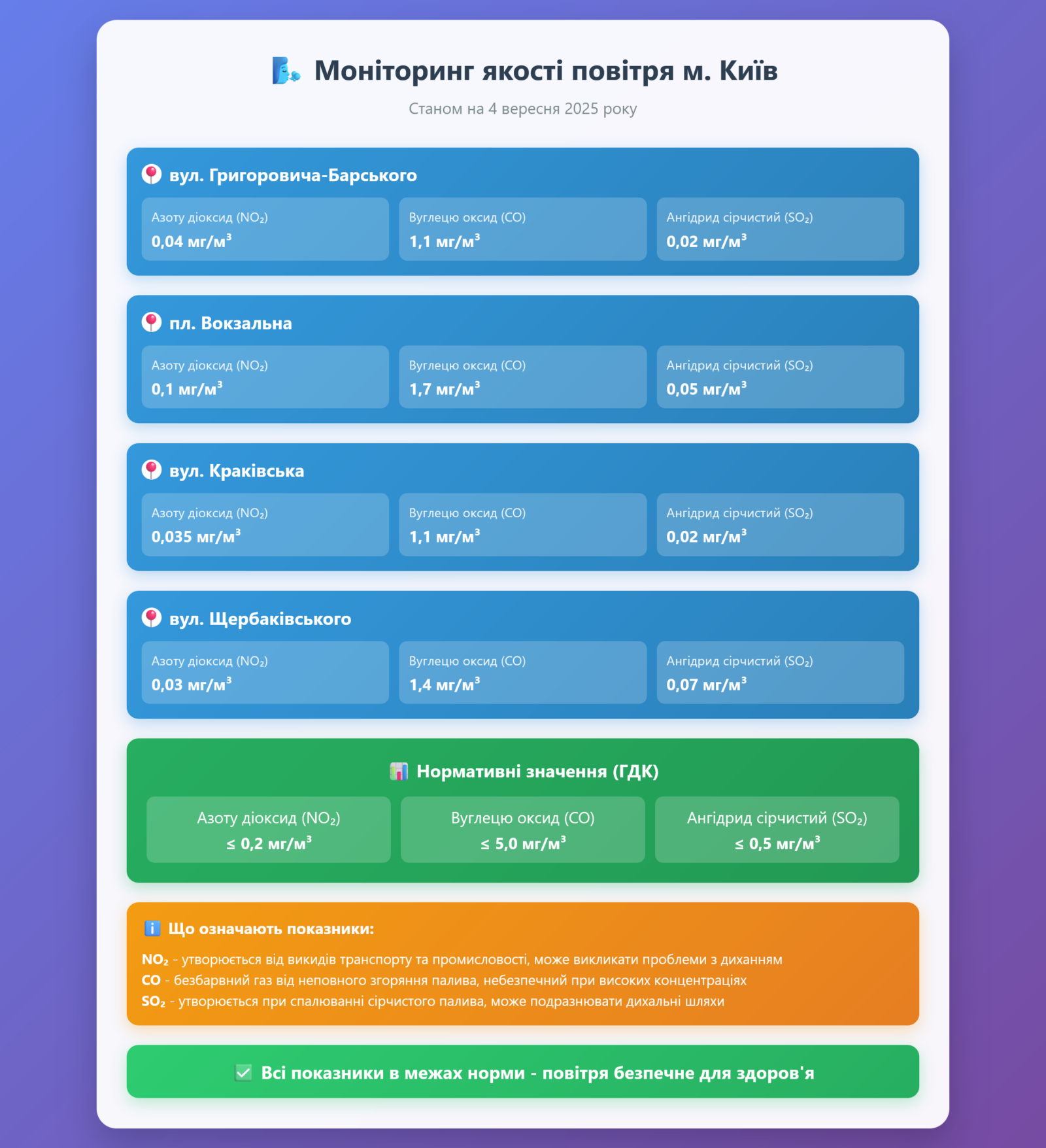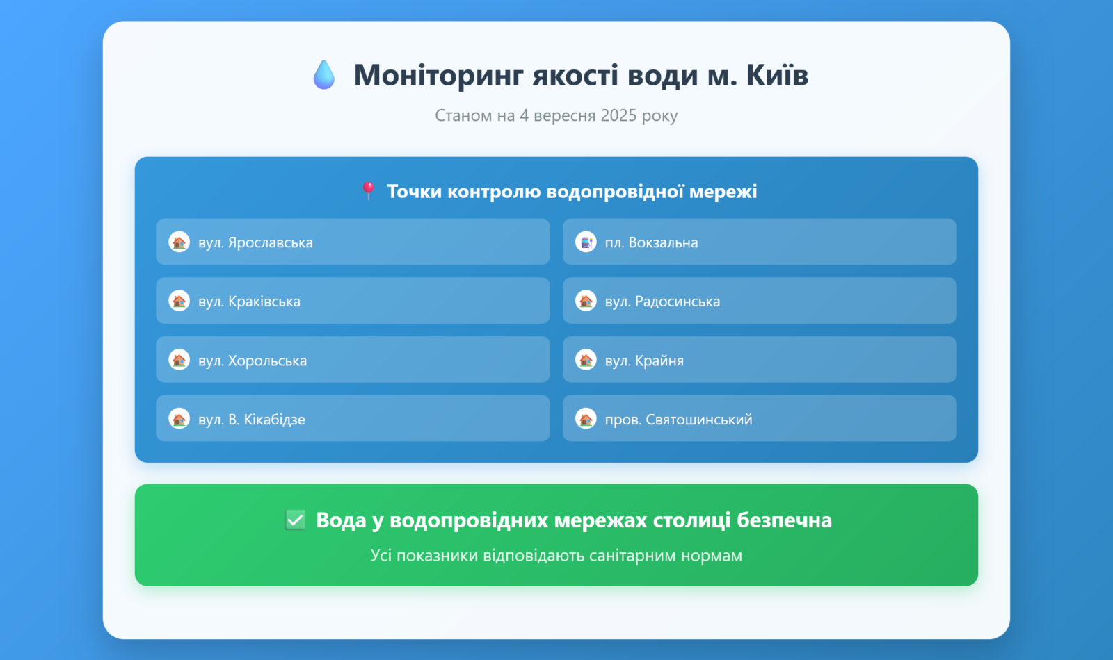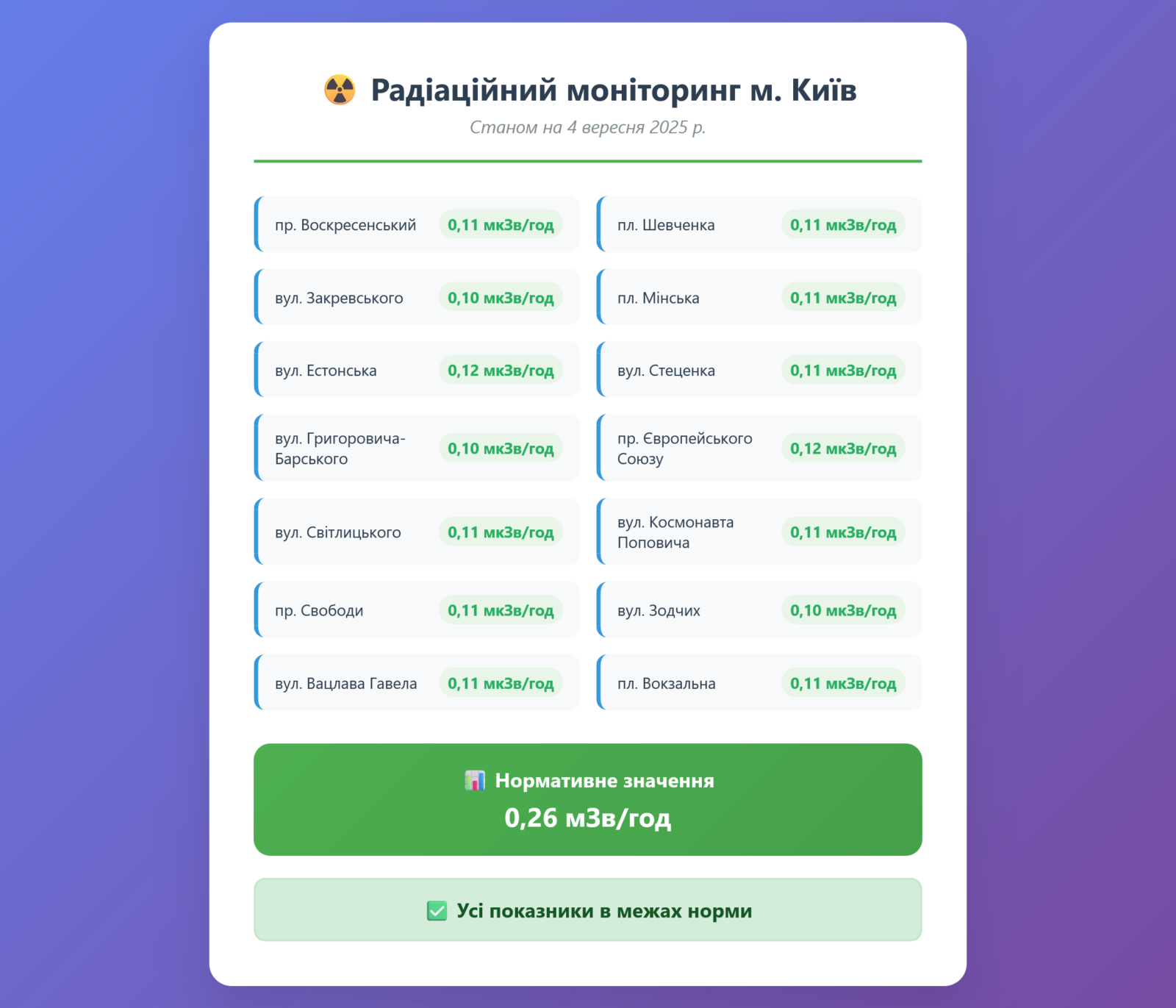 Радіаційний гамма фон, дані по атмосферному повітрю, відібрані проби питної води.