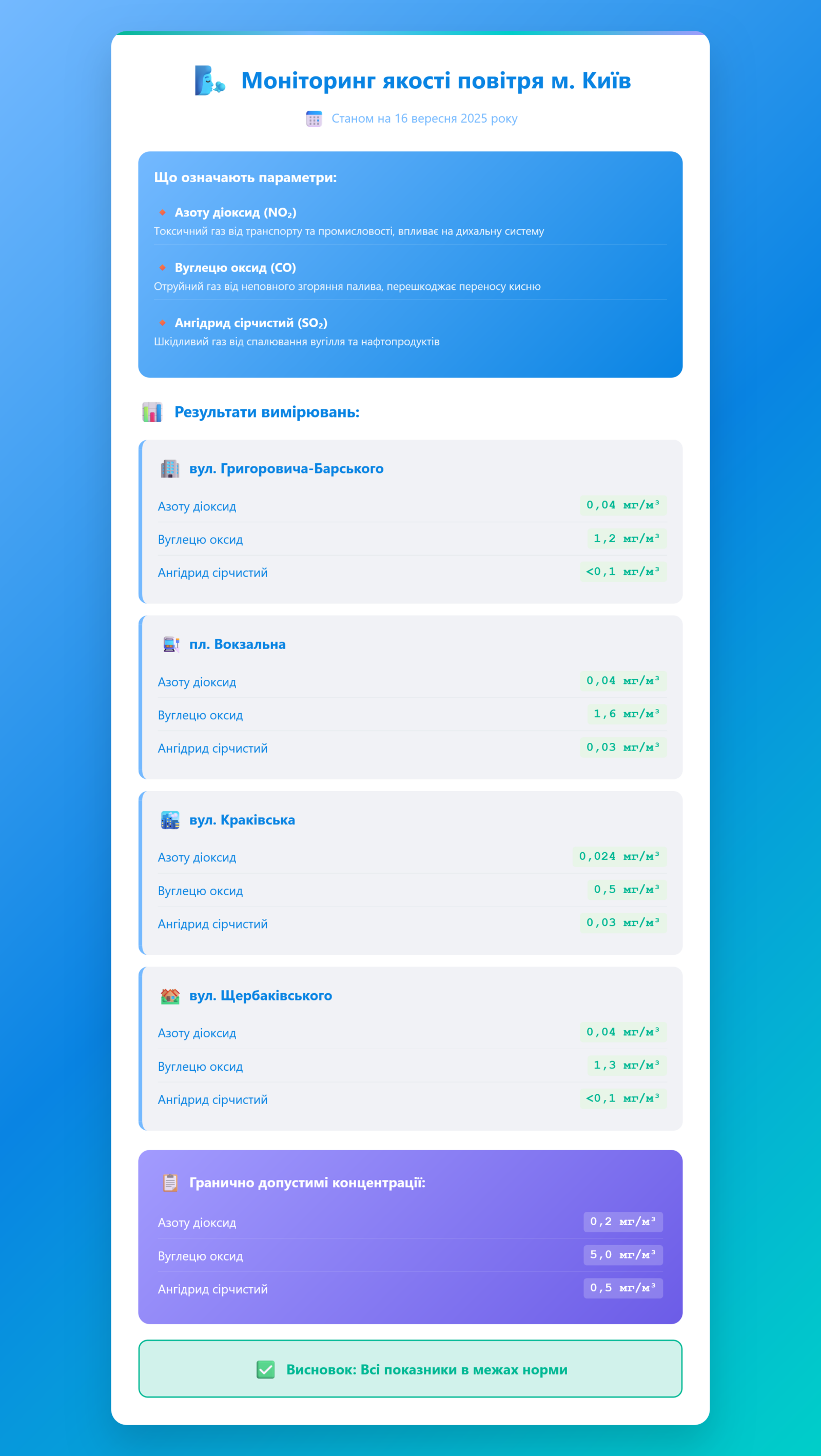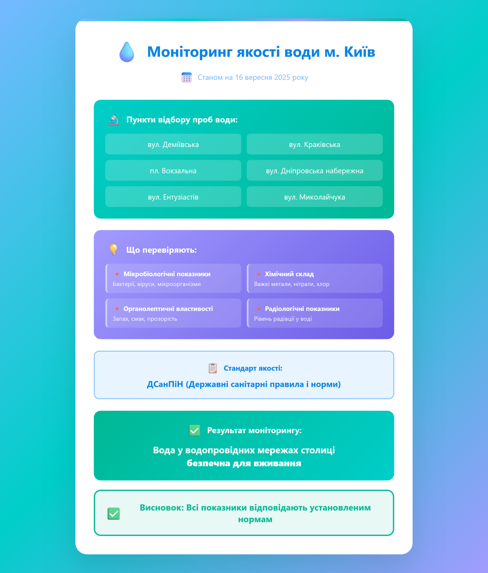 Радіаційний гамма фон, дані по атмосферному повітрю, відібрані проби питної води.