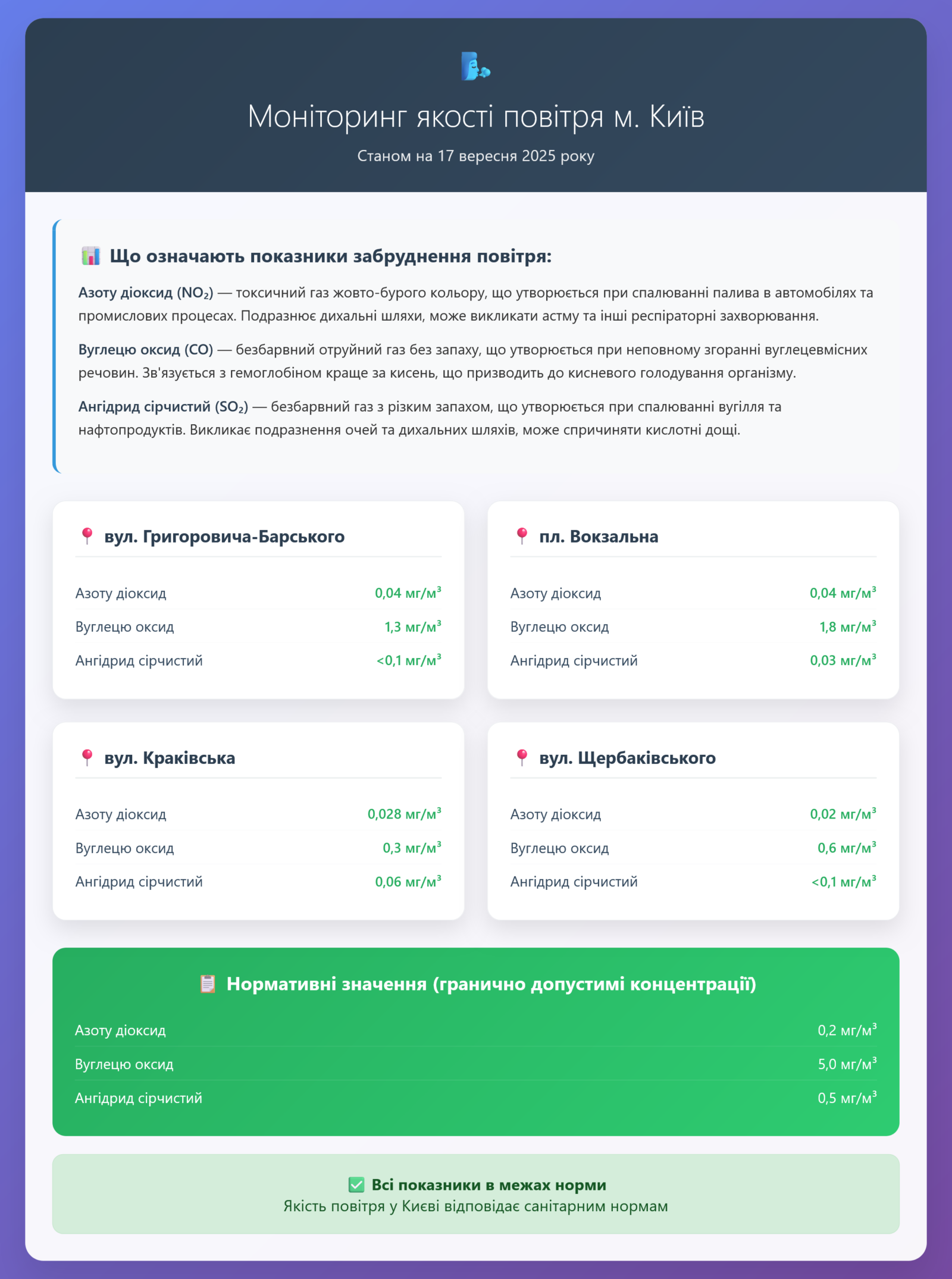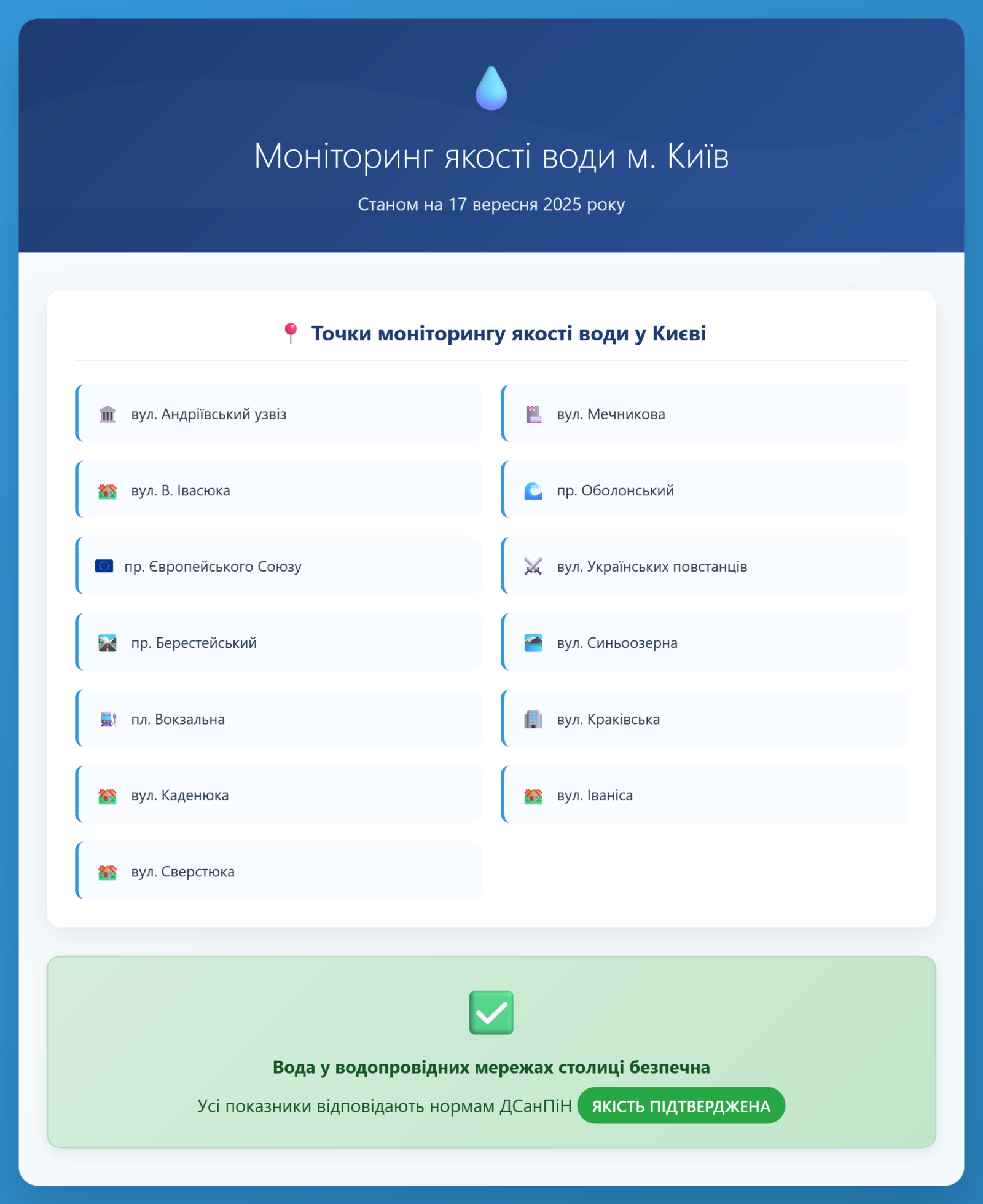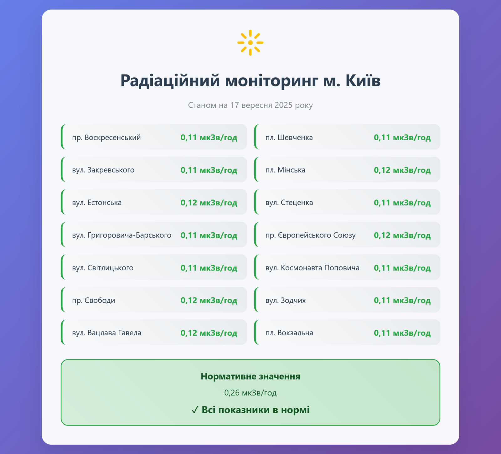 Радіаційний гамма фон, дані по атмосферному повітрю, відібрані проби питної води.