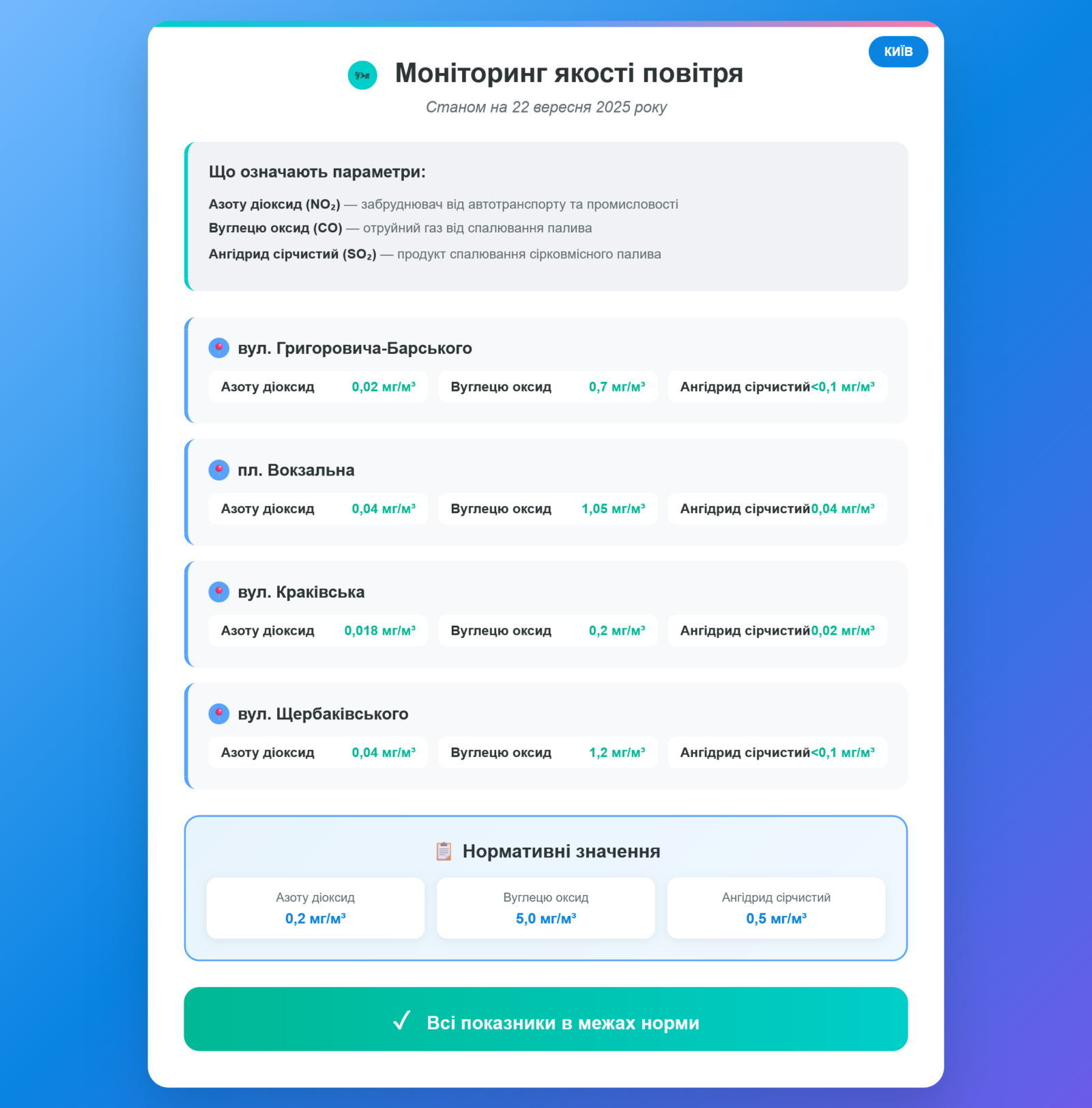 Радіаційний гамма фон, дані по атмосферному повітрю, відібрані проби питної води.