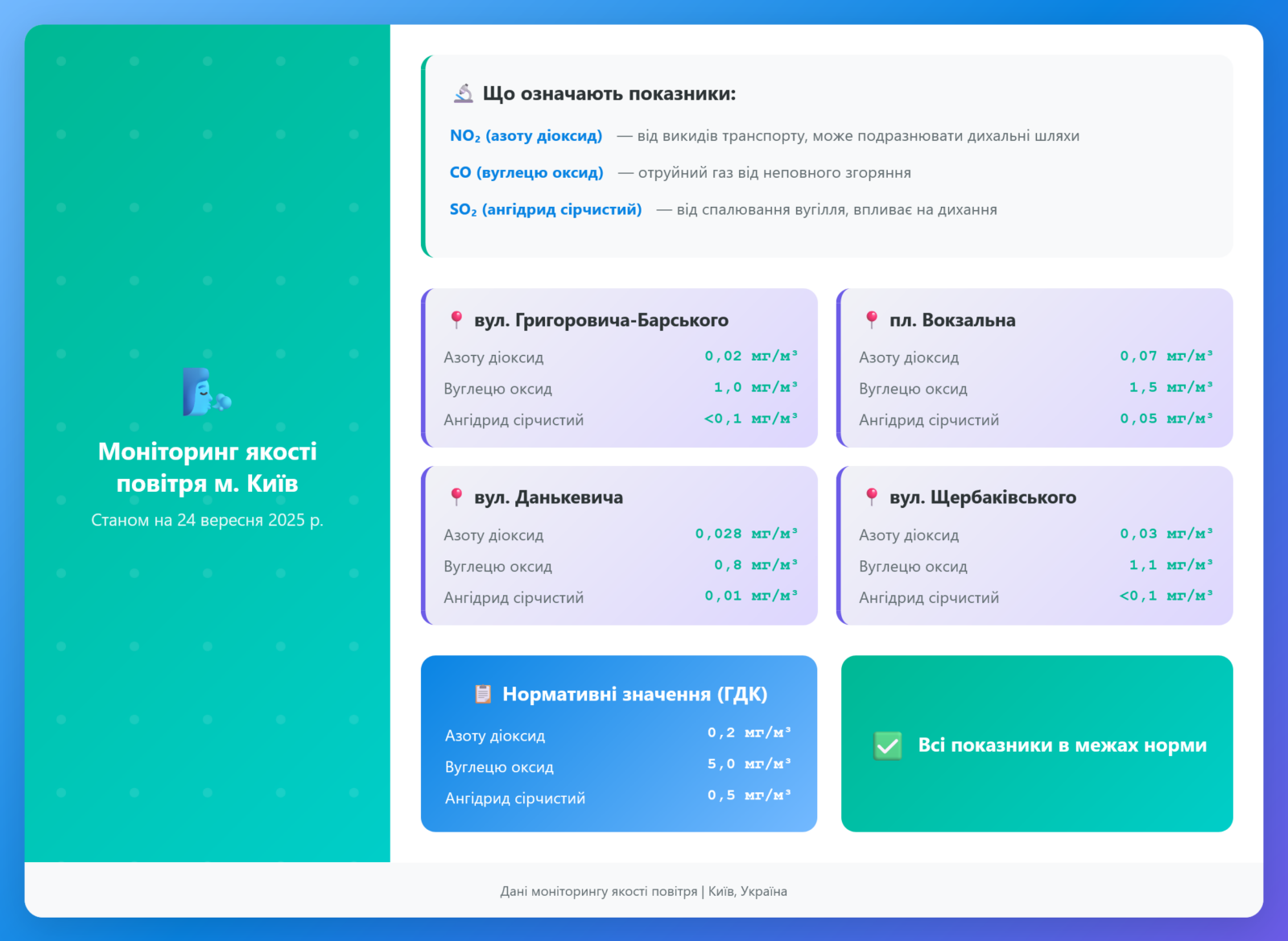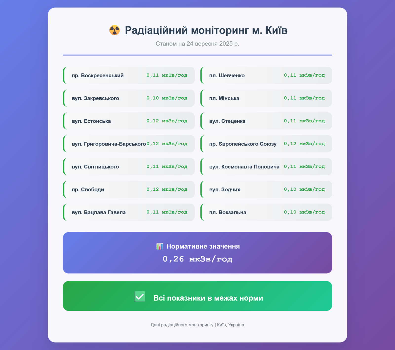 Радіаційний гамма фон, дані по атмосферному повітрю, відібрані проби питної води.