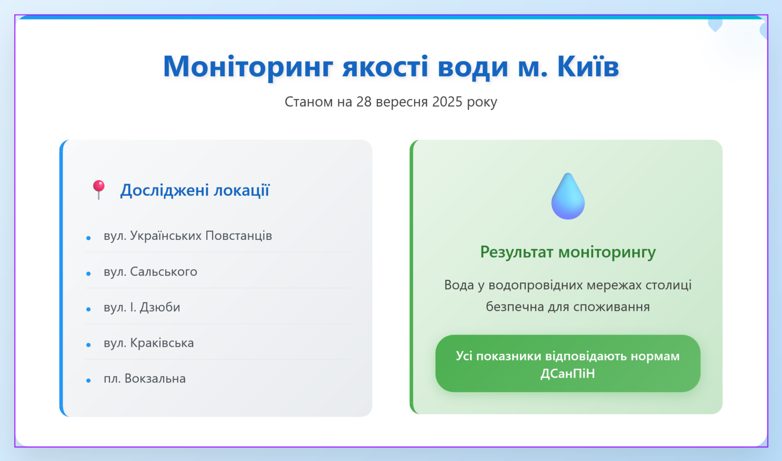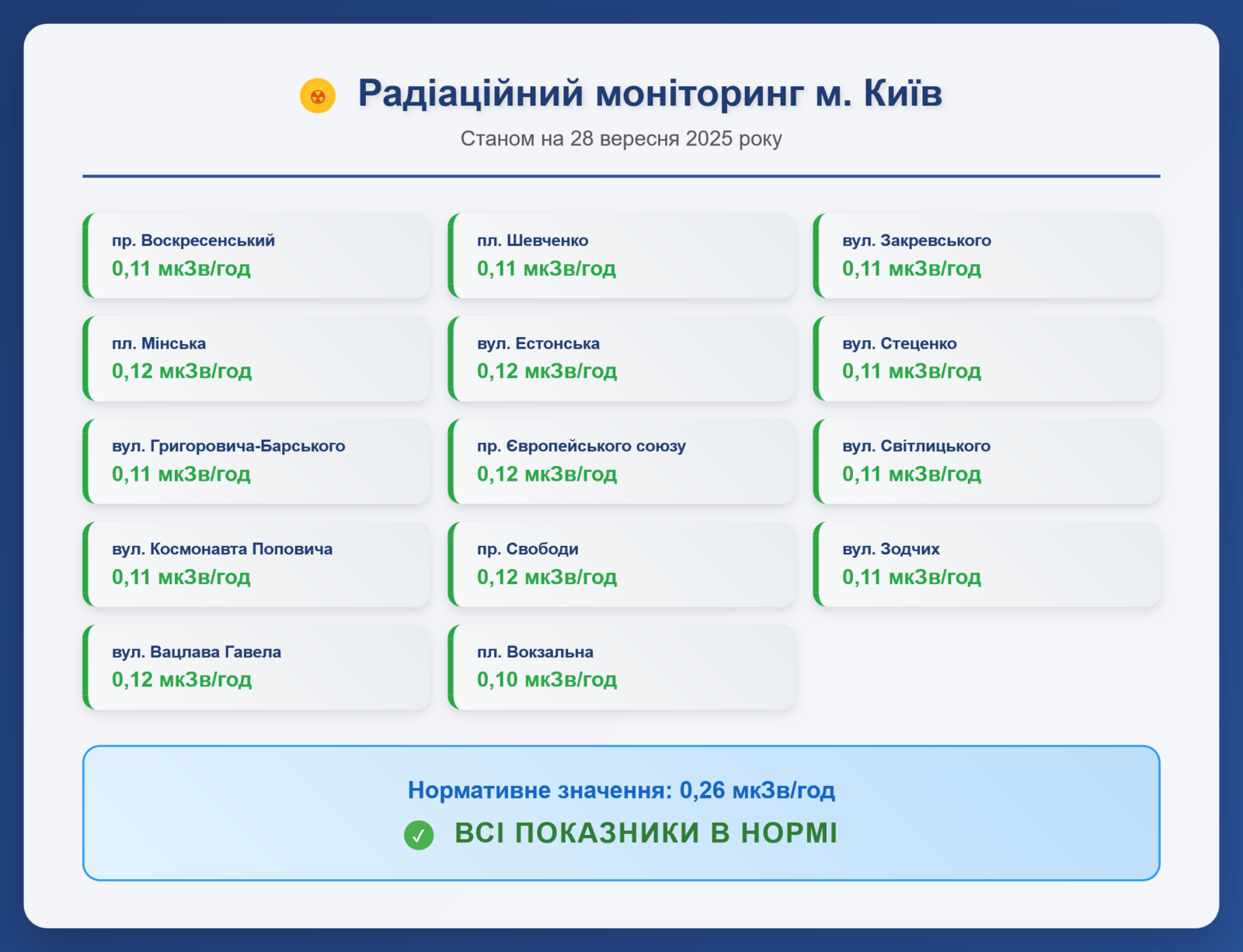 Радіаційний гамма фон, дані по атмосферному повітрю, відібрані проби питної води.