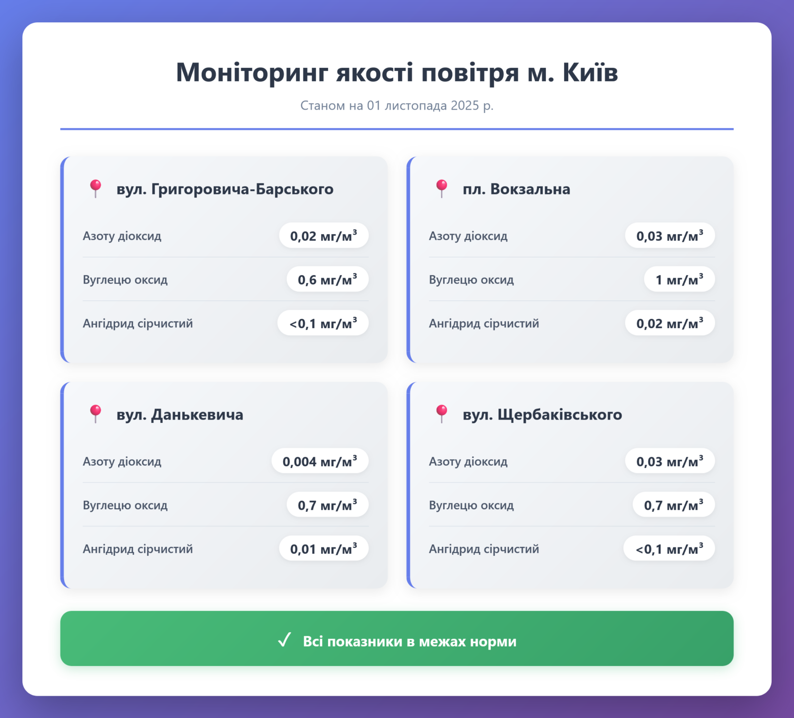 Радіаційний гамма фон, дані по атмосферному повітрю, відібрані проби питної води.
