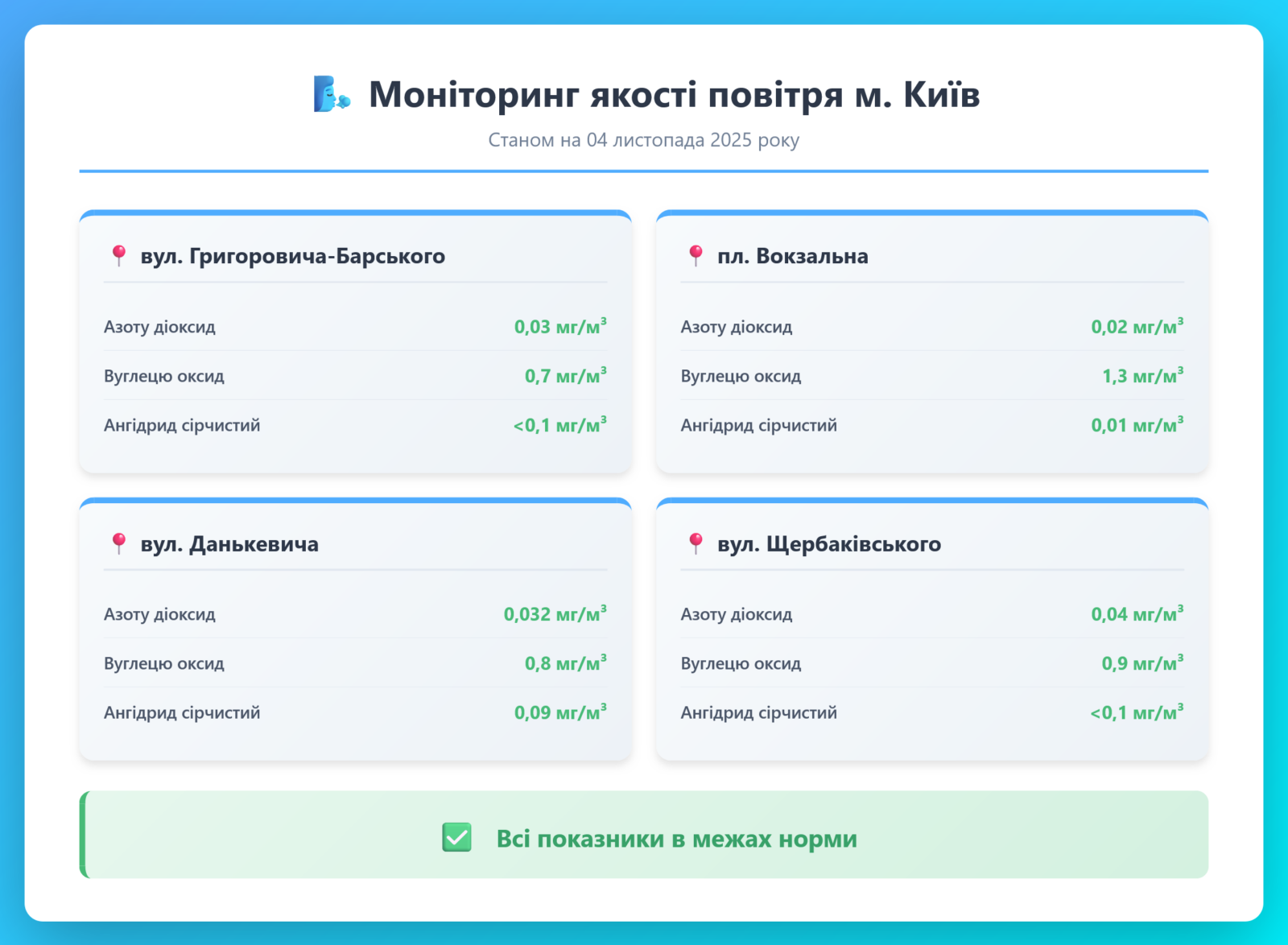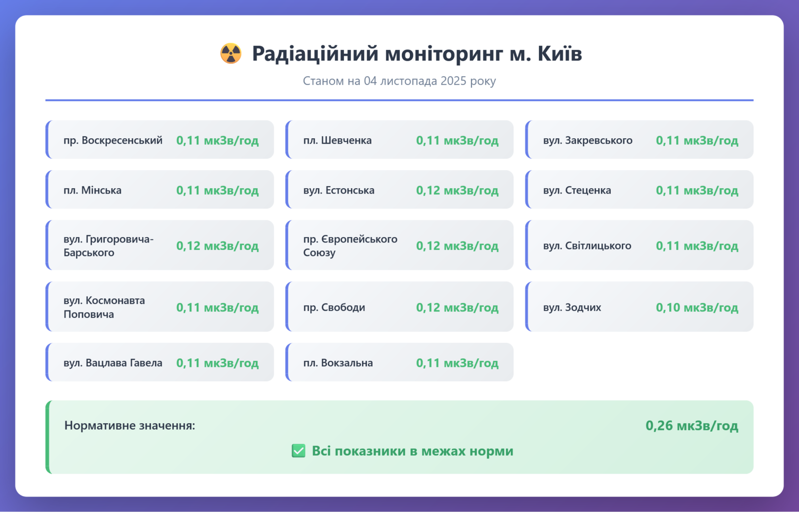 Радіаційний гамма фон, дані по атмосферному повітрю, відібрані проби питної води.