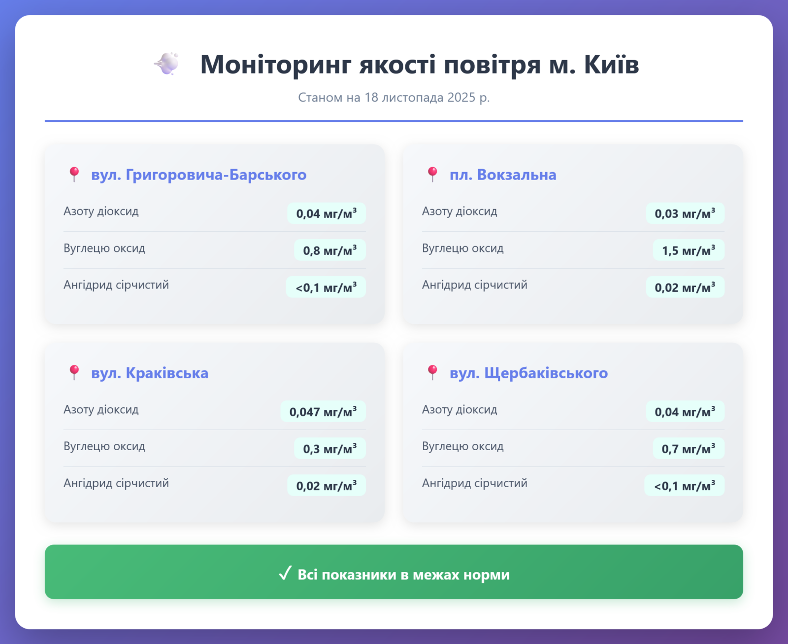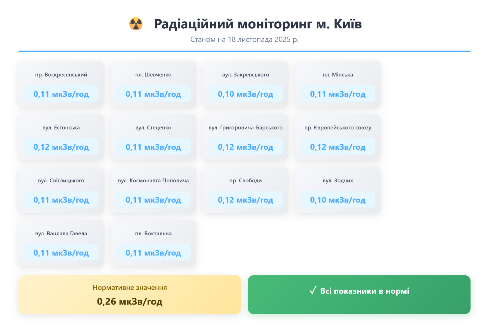 Радіаційний гамма фон, дані по атмосферному повітрю, відібрані проби питної води.