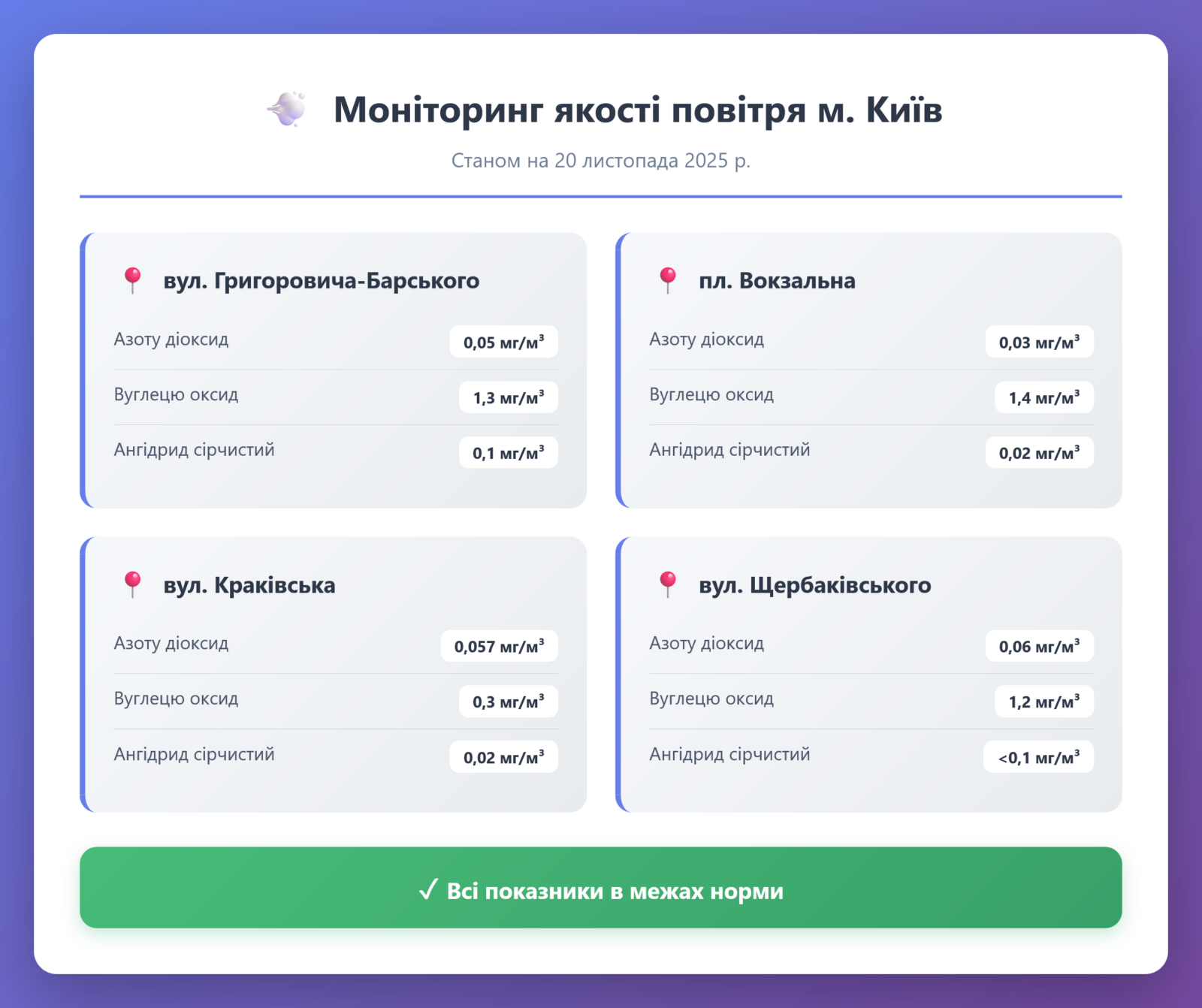 Радіаційний гамма фон, дані по атмосферному повітрю, відібрані проби питної води.