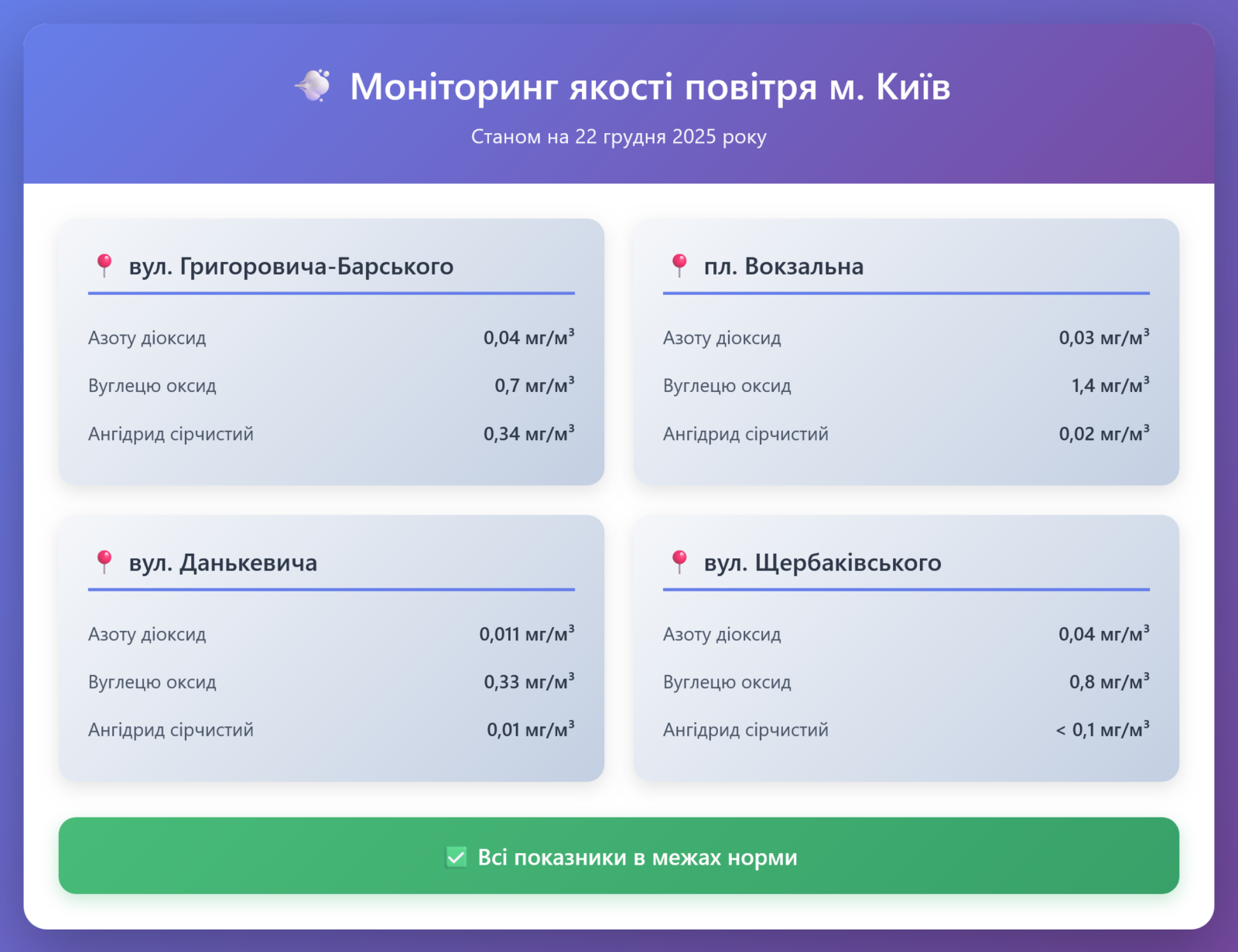 Радіаційний гамма фон, дані по атмосферному повітрю, відібрані проби питної води.