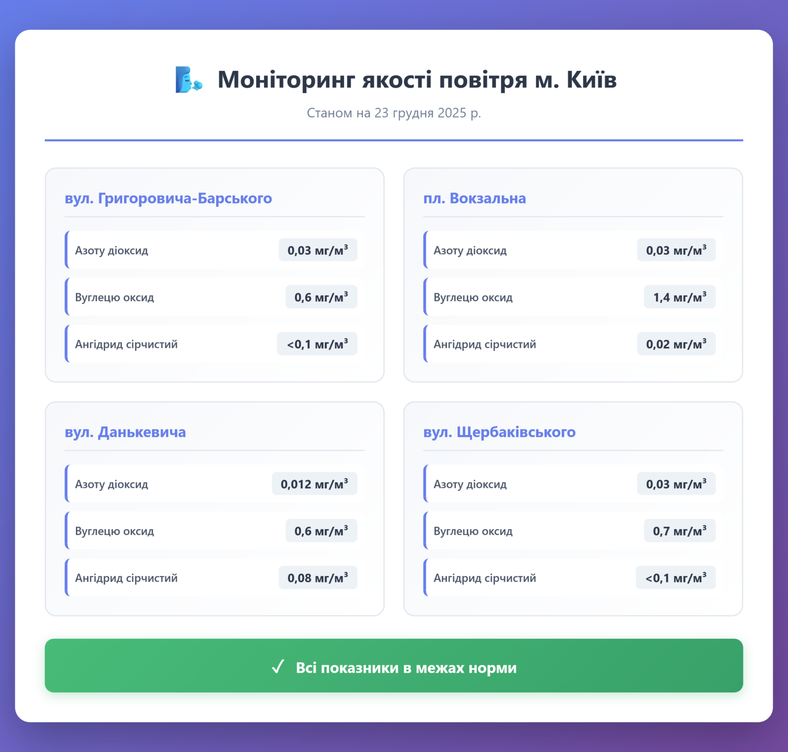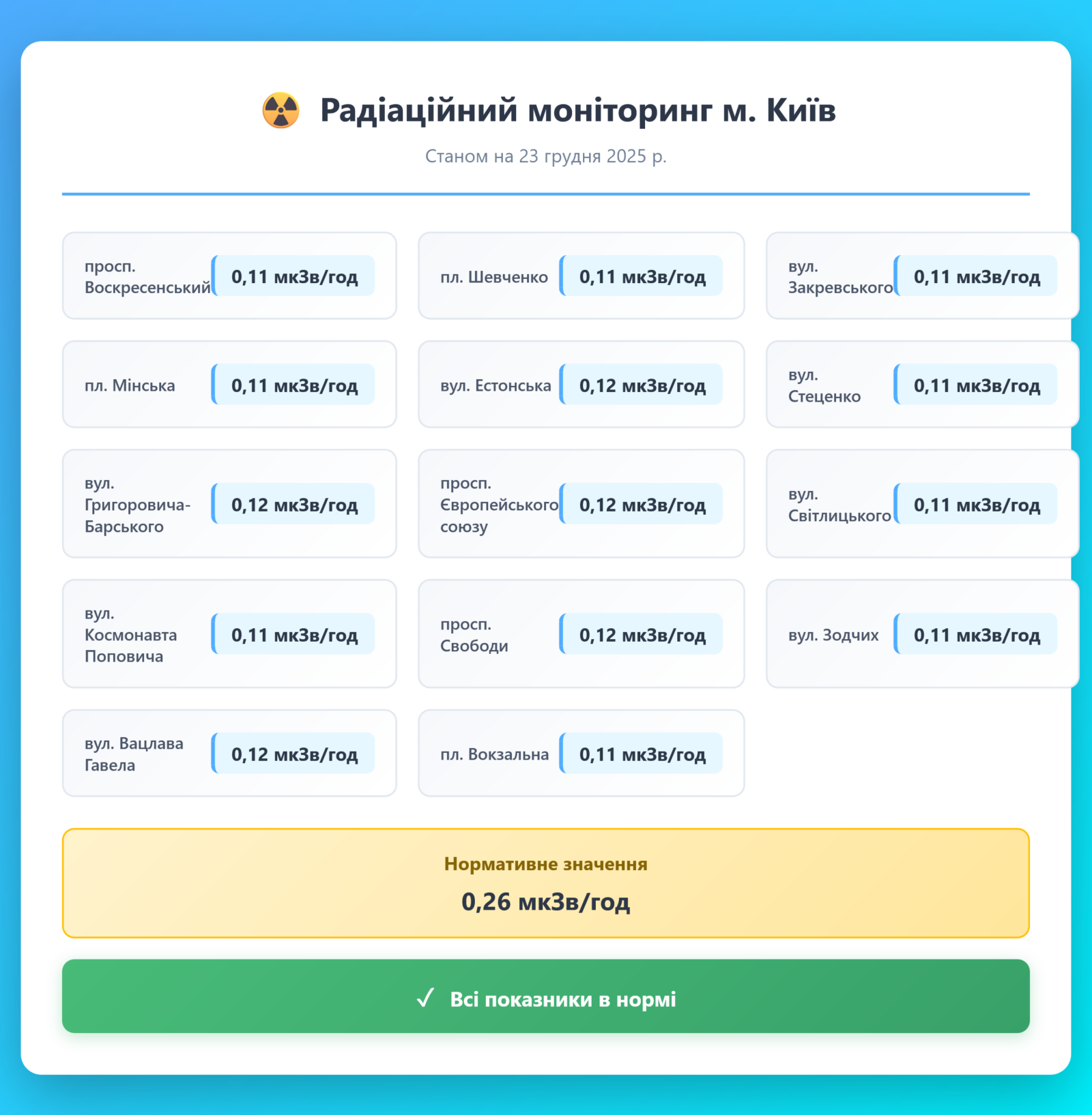 Радіаційний гамма фон, дані по атмосферному повітрю, відібрані проби питної води.