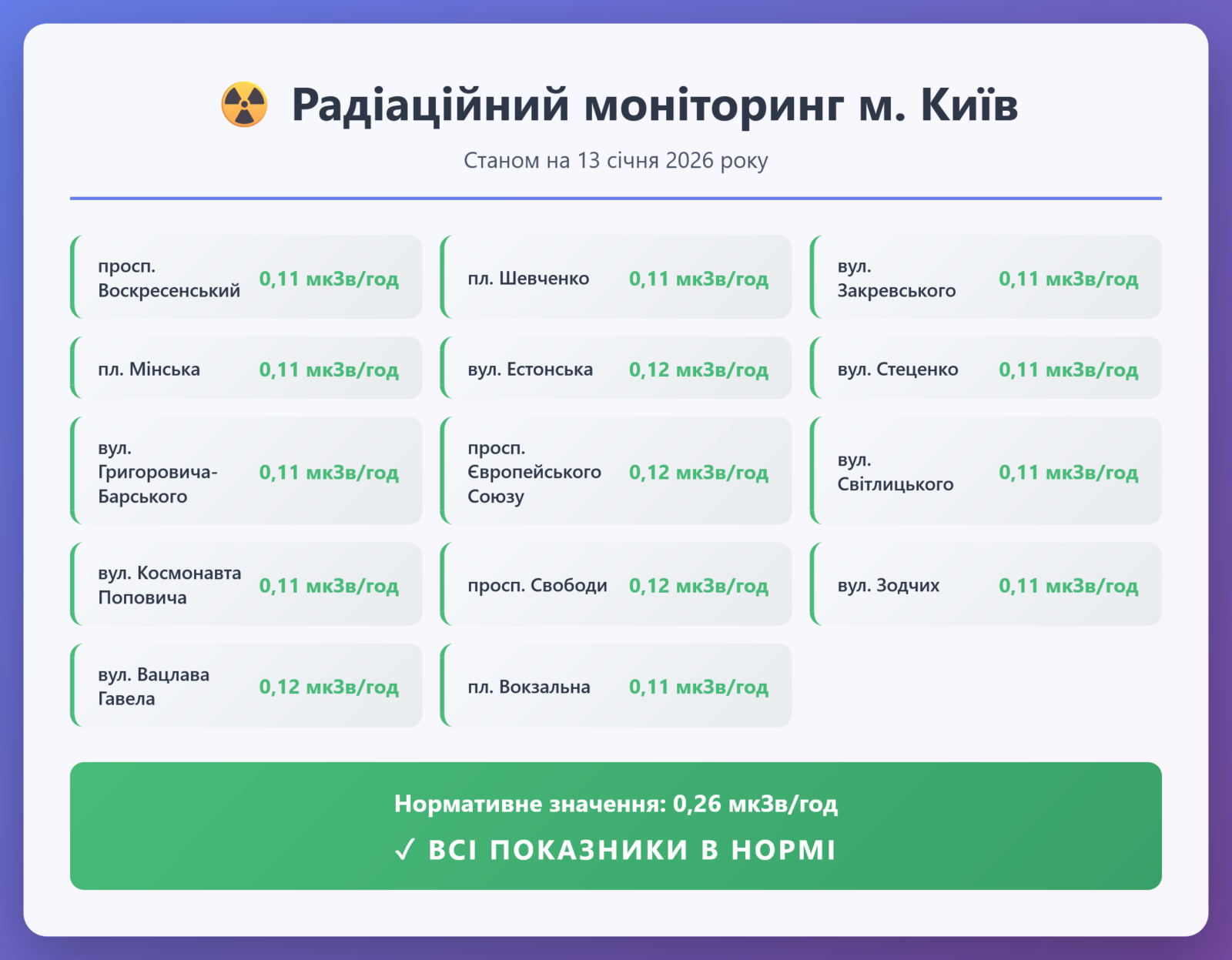 Радіаційний гамма фон, дані по атмосферному повітрю, відібрані проби питної води.