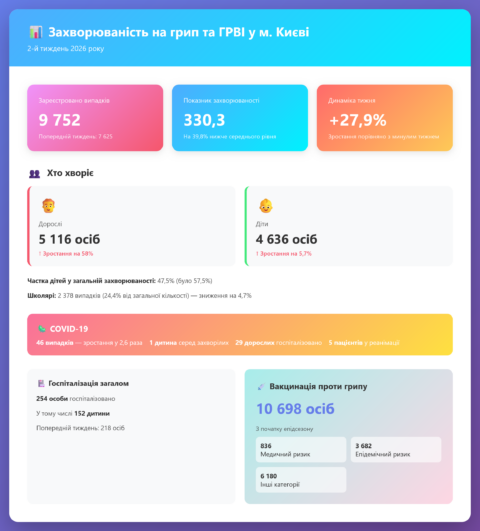 📊 Захворюваність на грип та ГРВІ у Києві: підсумки 1 тижня 2026 року.