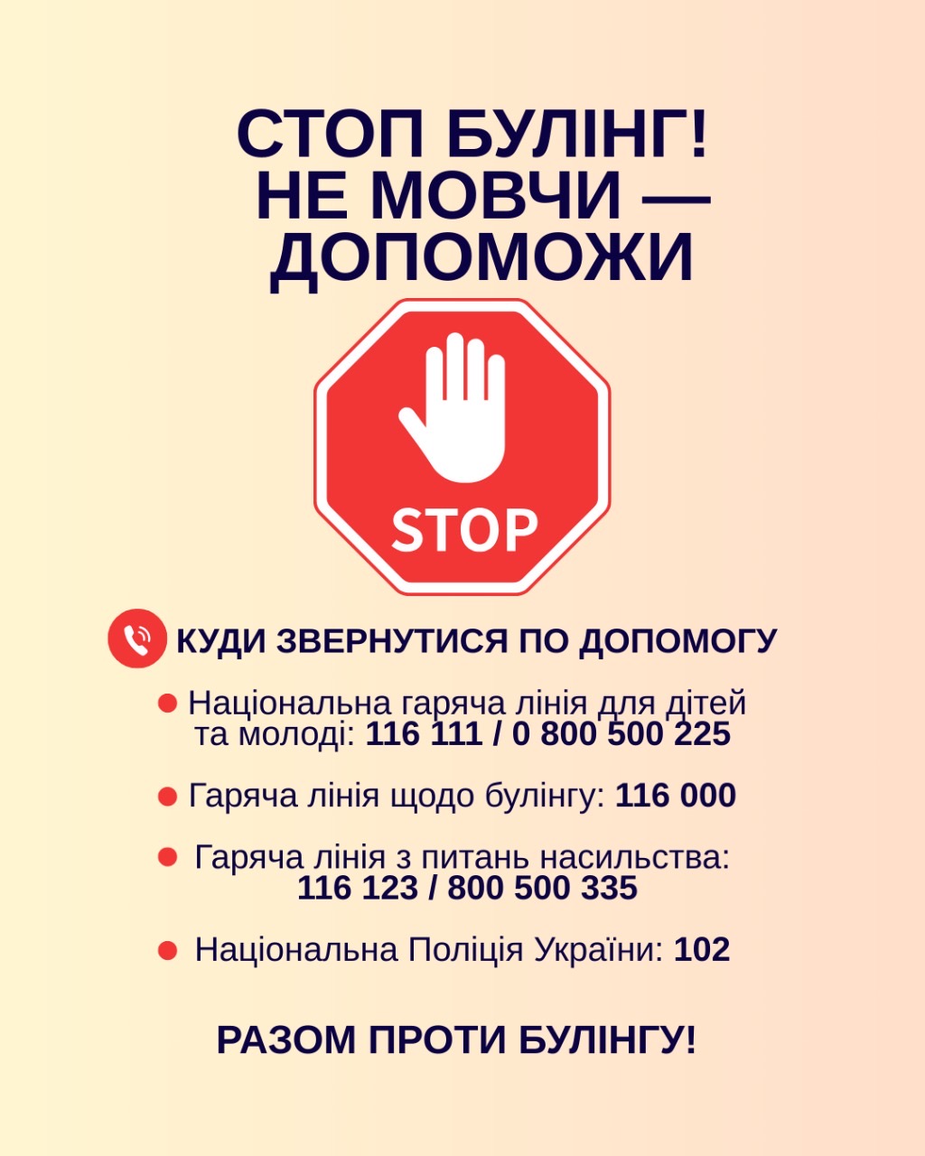 #СтопБулінг #БезпечнаШкола #РазомПротиБулінгу #БезпекаДітей