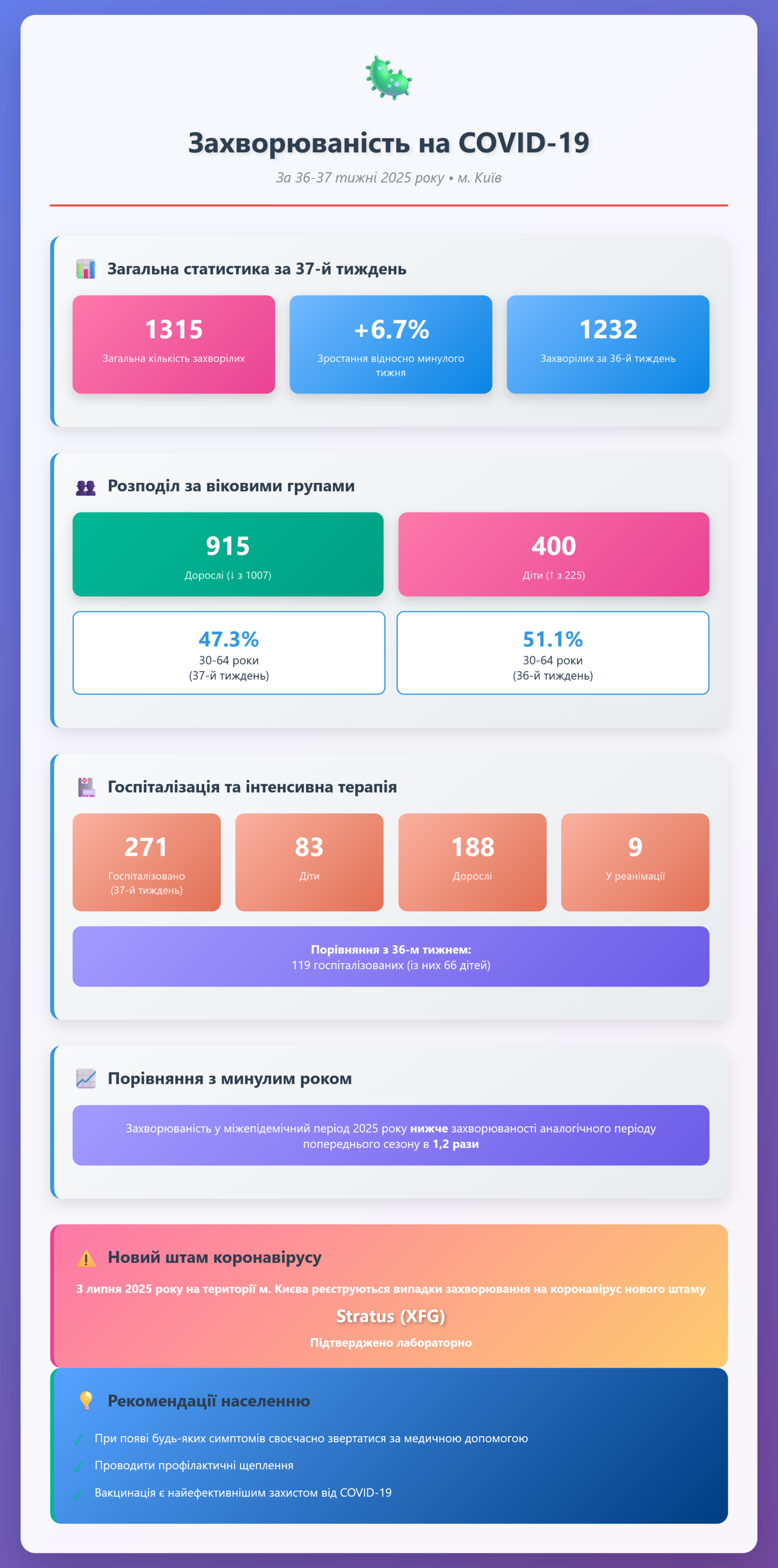 📊 COVID-19 у Києві: дані за 37-й тиждень 2025 року