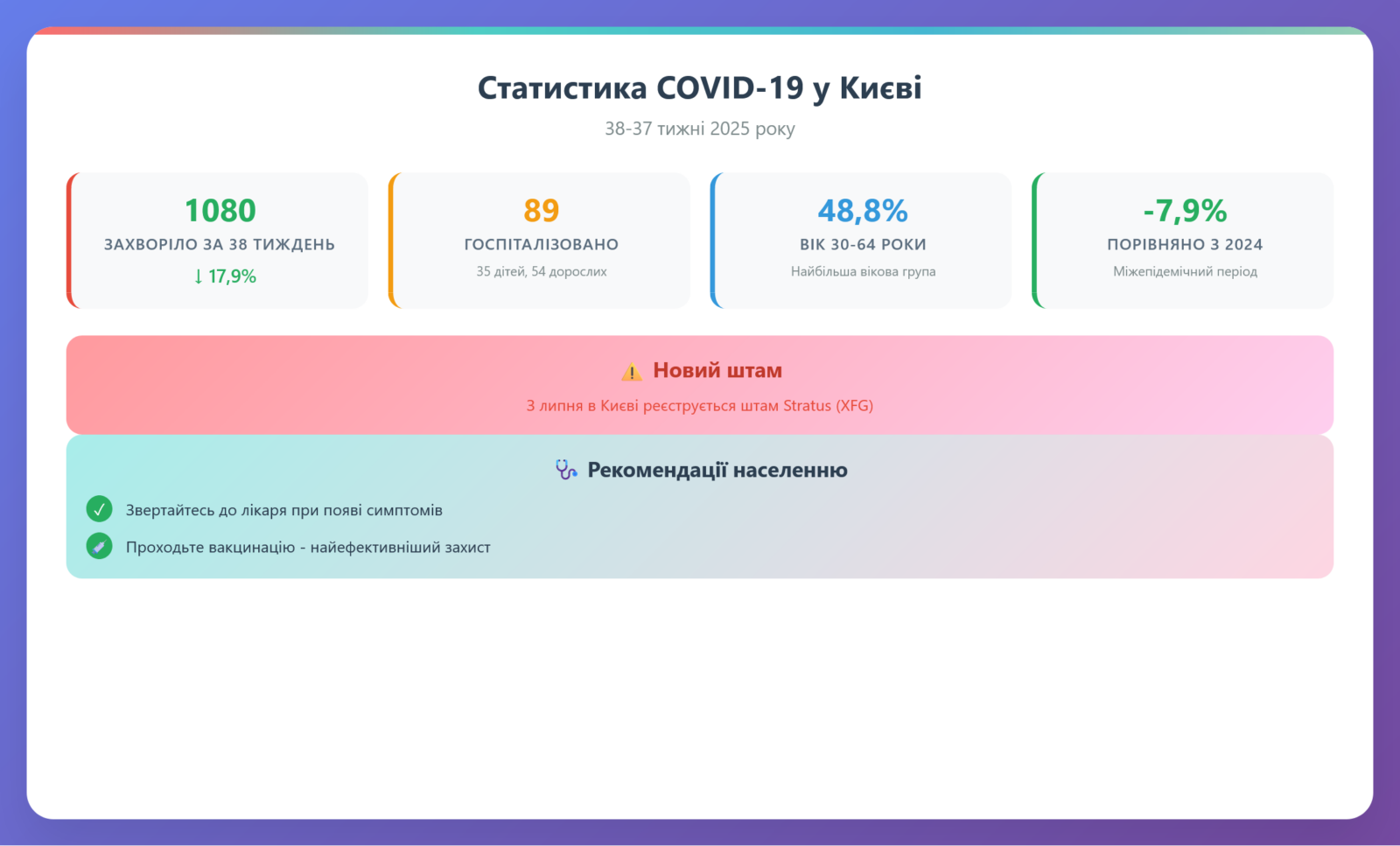 📊 COVID-19 у Києві: оперативна інформація (37–38 тиждень 2025 року)