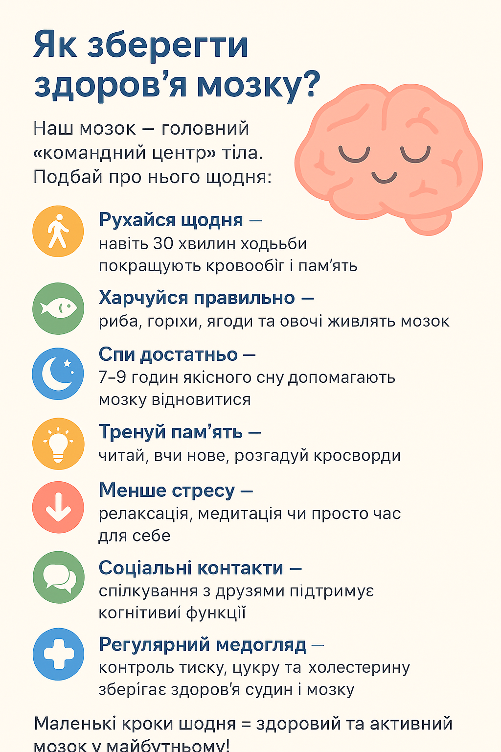 💡 Маленькі кроки щодня = здоровий та активний мозок у майбутньому!