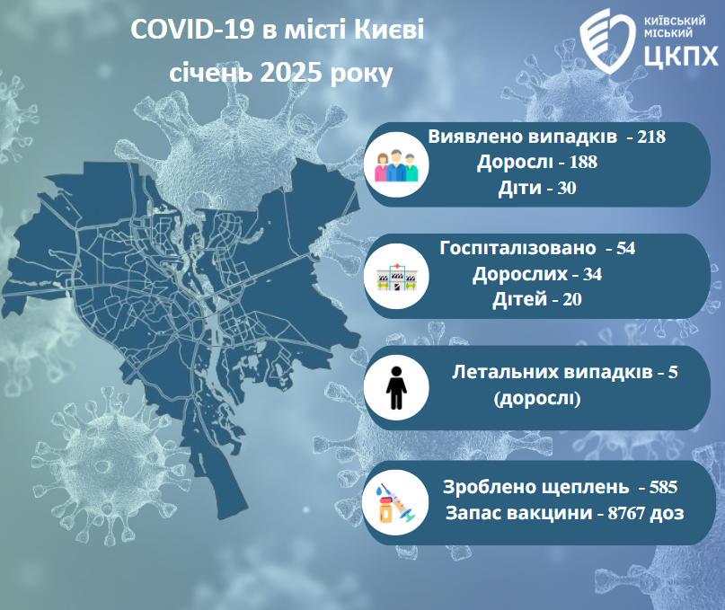 За січень 2025 року у м.Києві зафіксовано 218 випадків захворювання на COVID-19.