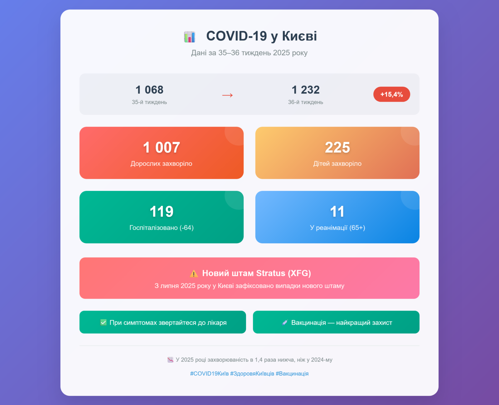 📊 Захворюваність на COVID-19 у Києві: дані за 35–36 тиждень 2025 року.