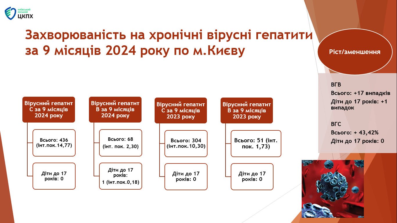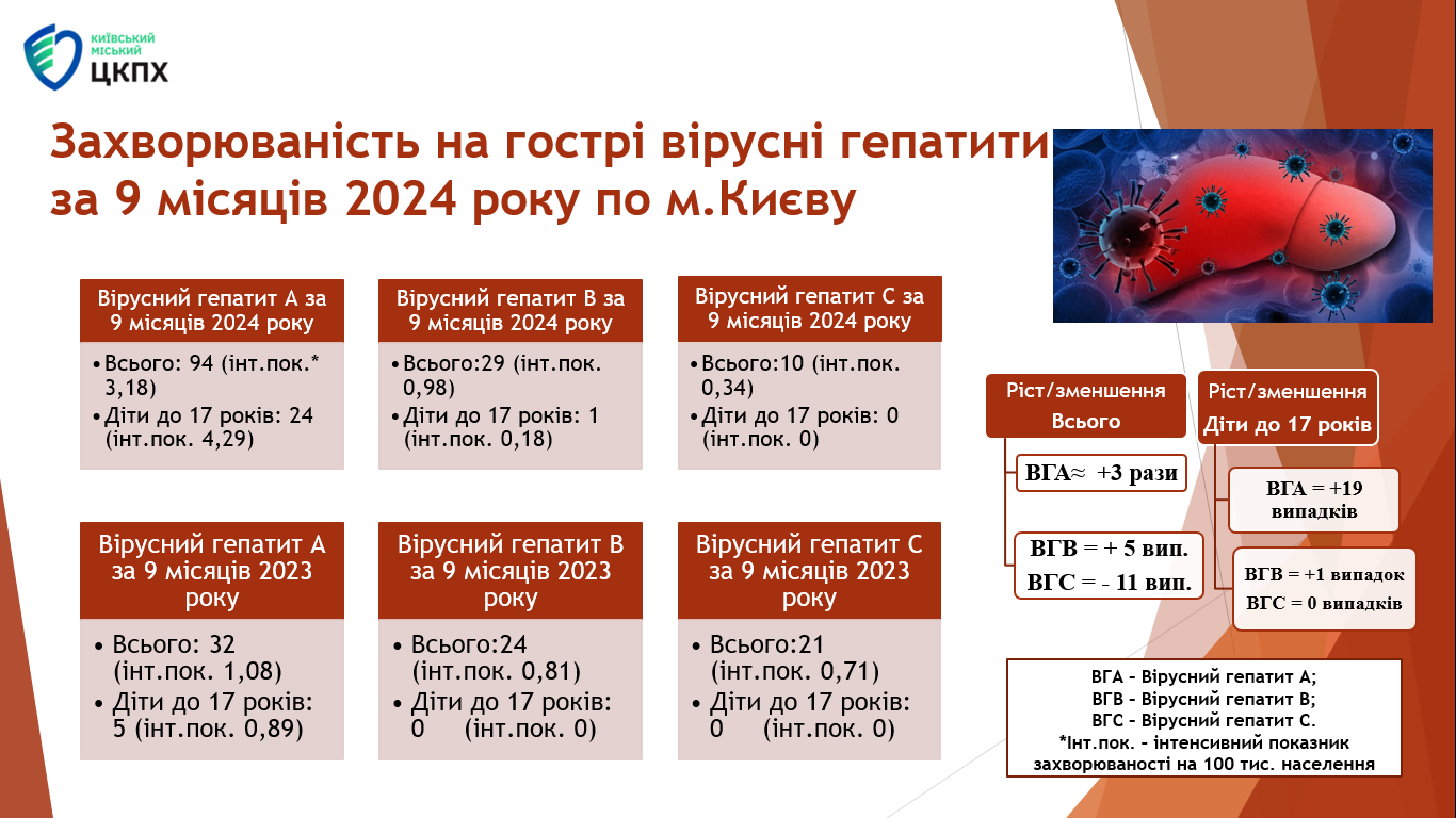 Захворюваність на гострі вірусні гепатити за 9 місяців 2024 року по м.Києву
