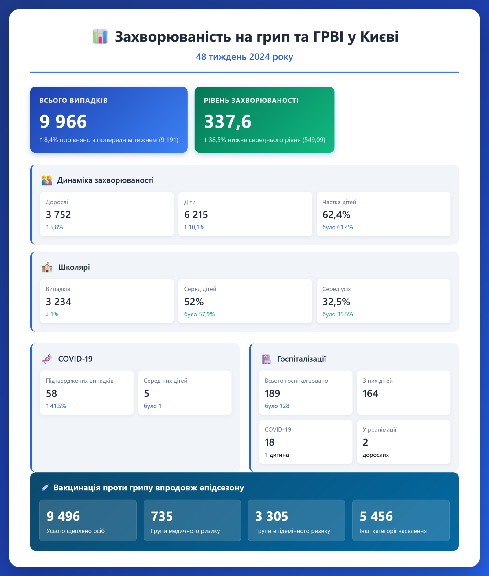 🔹 Частка дітей серед усіх хворих: 62,4% (раніше — 61,4%)