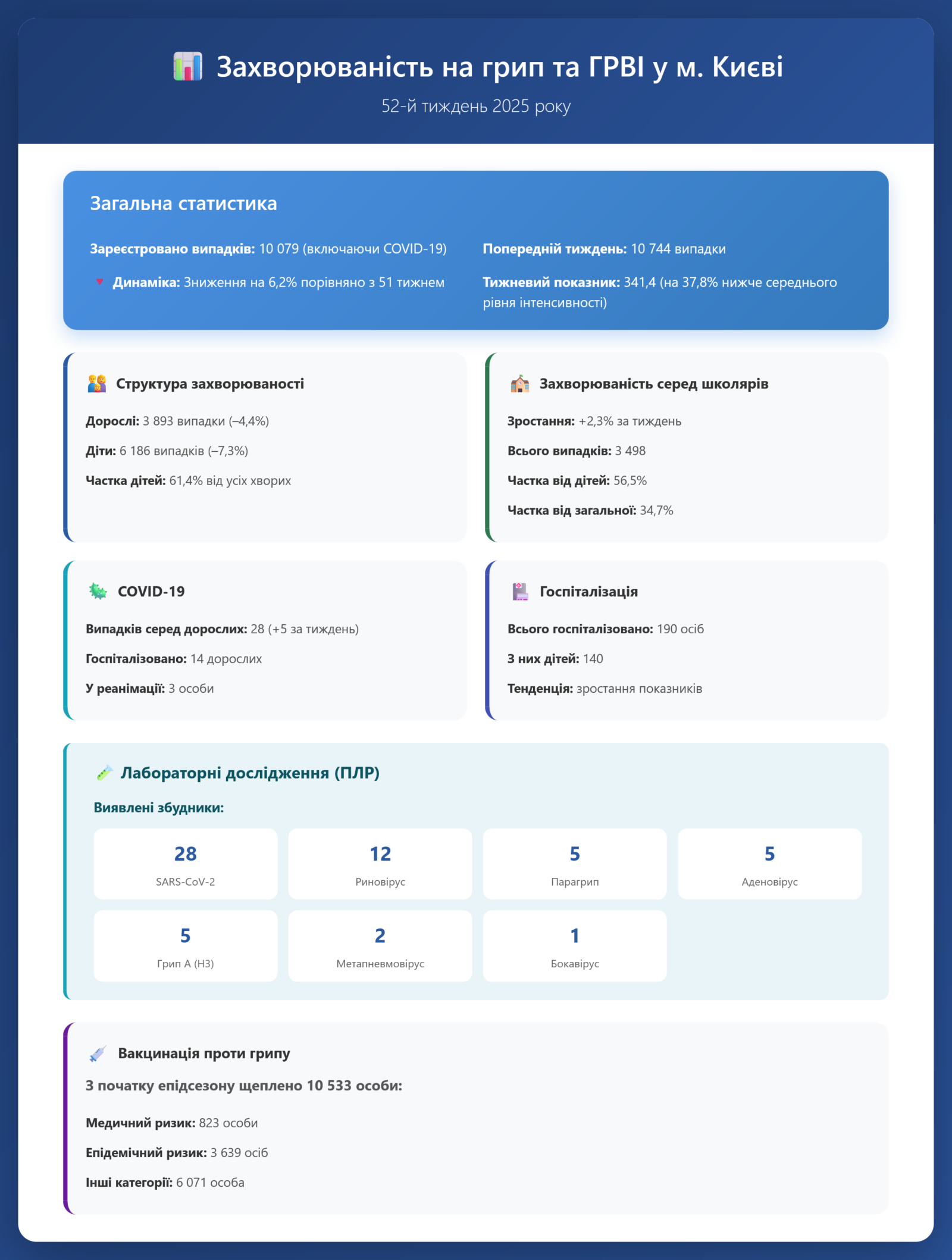📊 Захворюваність на грип та ГРВІ у м. Києві 52-й тиждень 2025 року.