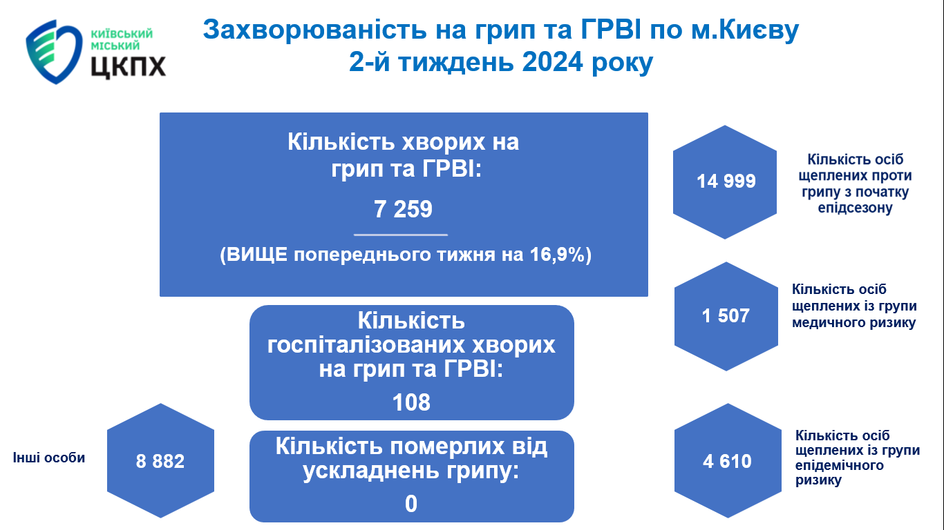 Захворюваність на грип та ГРВІ в м.Києві 2-й тиждень 2025 року.
