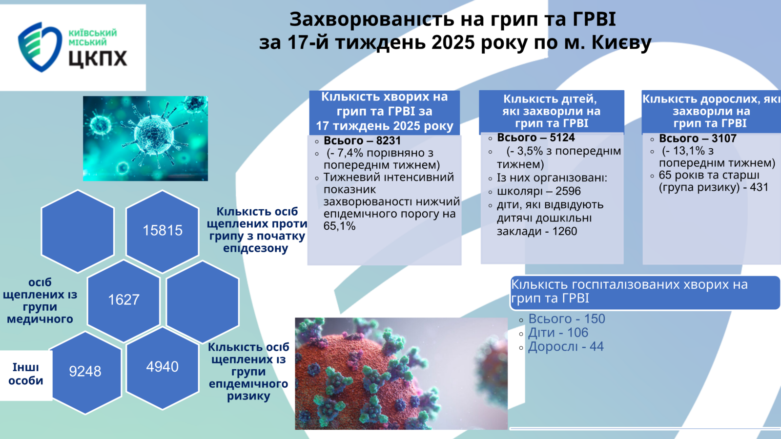 Захворюваність на грип та ГРВІ за 17 тиждень 2025 року у м.Києві