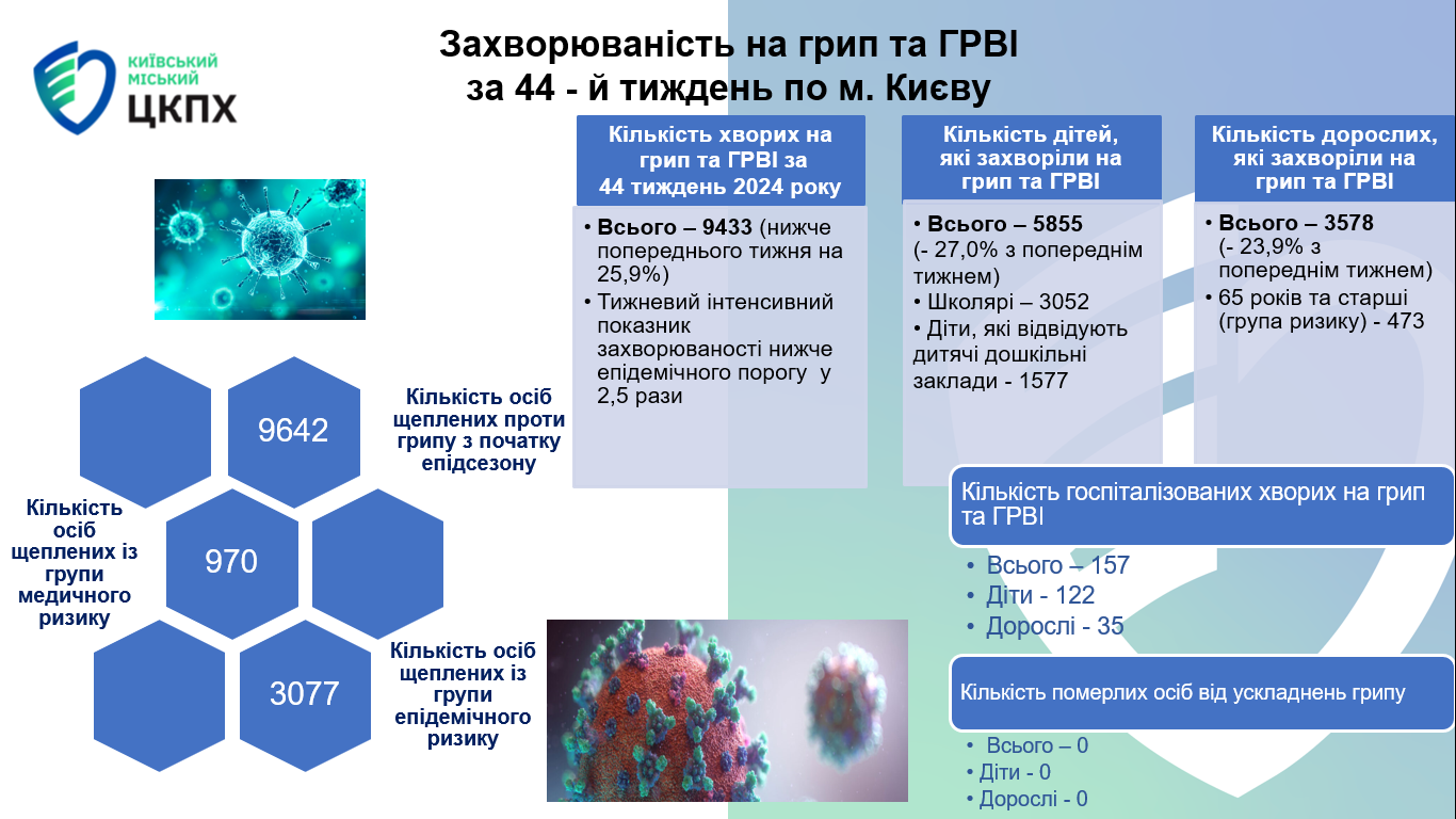 Захворюваність на грип та ГРВІ за 44 тиждень в місті Києві.